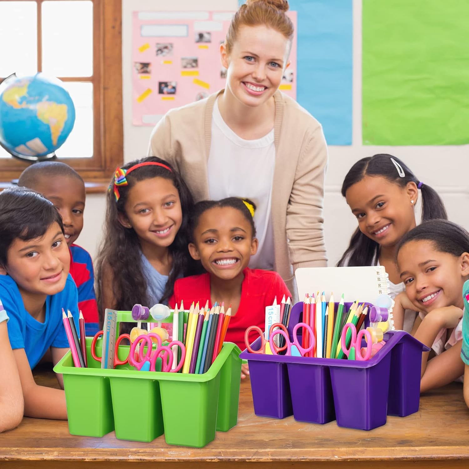 - Bright Assorted Colors: our plastic classroom storage compartment caddies are made in red, orange, yellow, green, blue and purple; These rainbow colors will make your storage boxes beautiful and bright; Children will love these colorful storage boxes very much after receiving these rainbow colors storage caddy bins