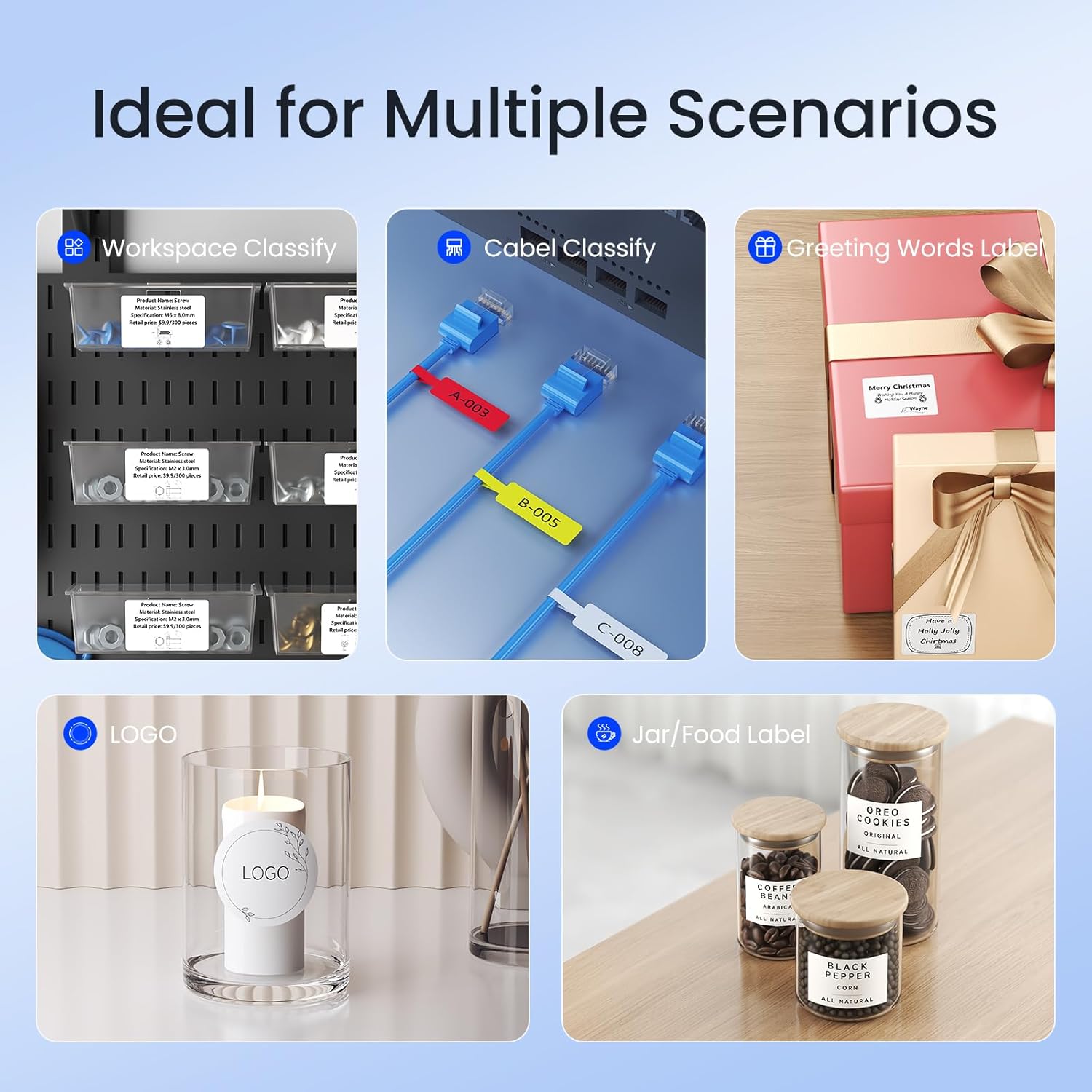 - No Bound Consumables, Cost-Saving: Experience the cost-saving of our label maker, which eliminates the need for bound consumables. This label maker allows you to use printer paper from any brand