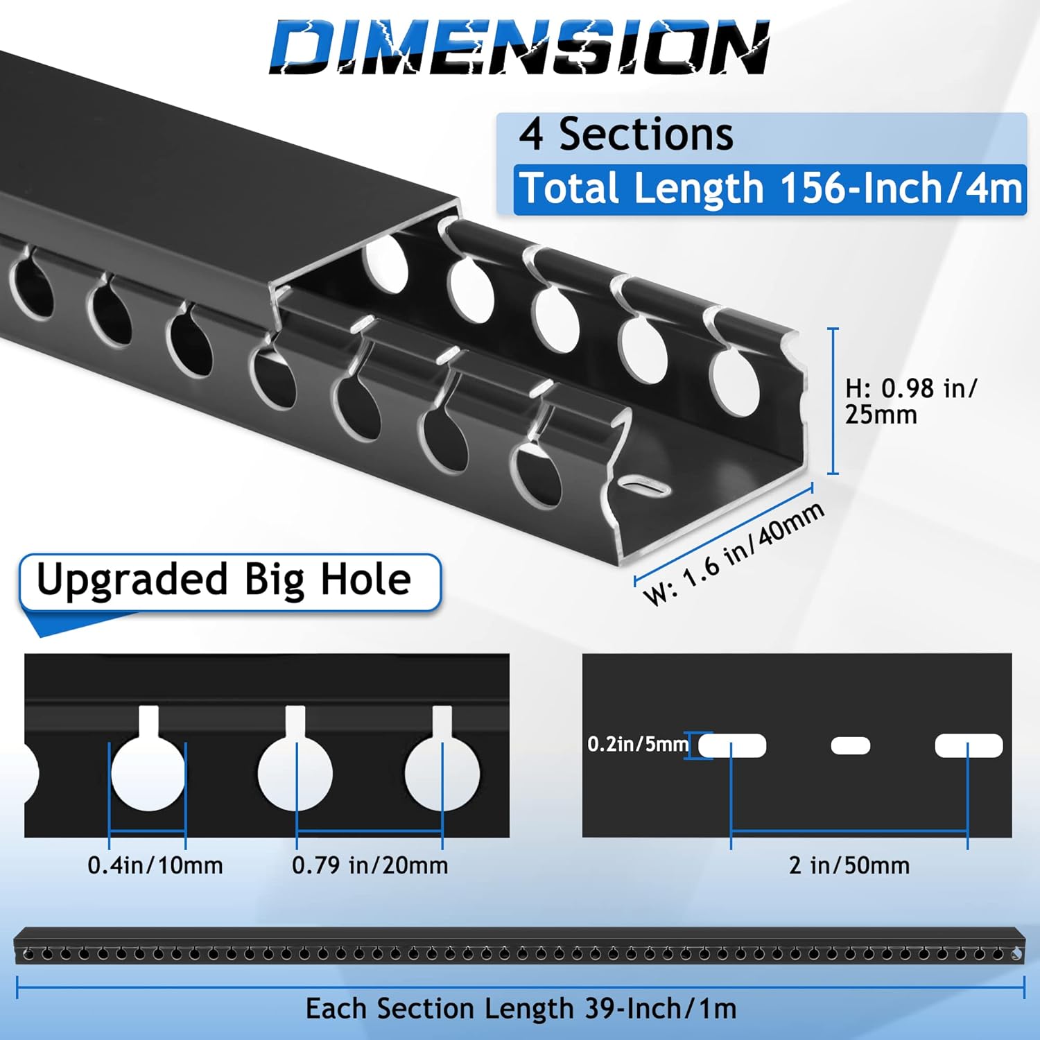 ZhiYo Cable Raceway 156in(4X L39in), Server Rack Cable Management Under Desk Cord Organizer, Electrical Safe PVC Cable Channel Open Slot Wire Raceway for Network/PC/TVs, Wire Duct H1 x W1.6in Black