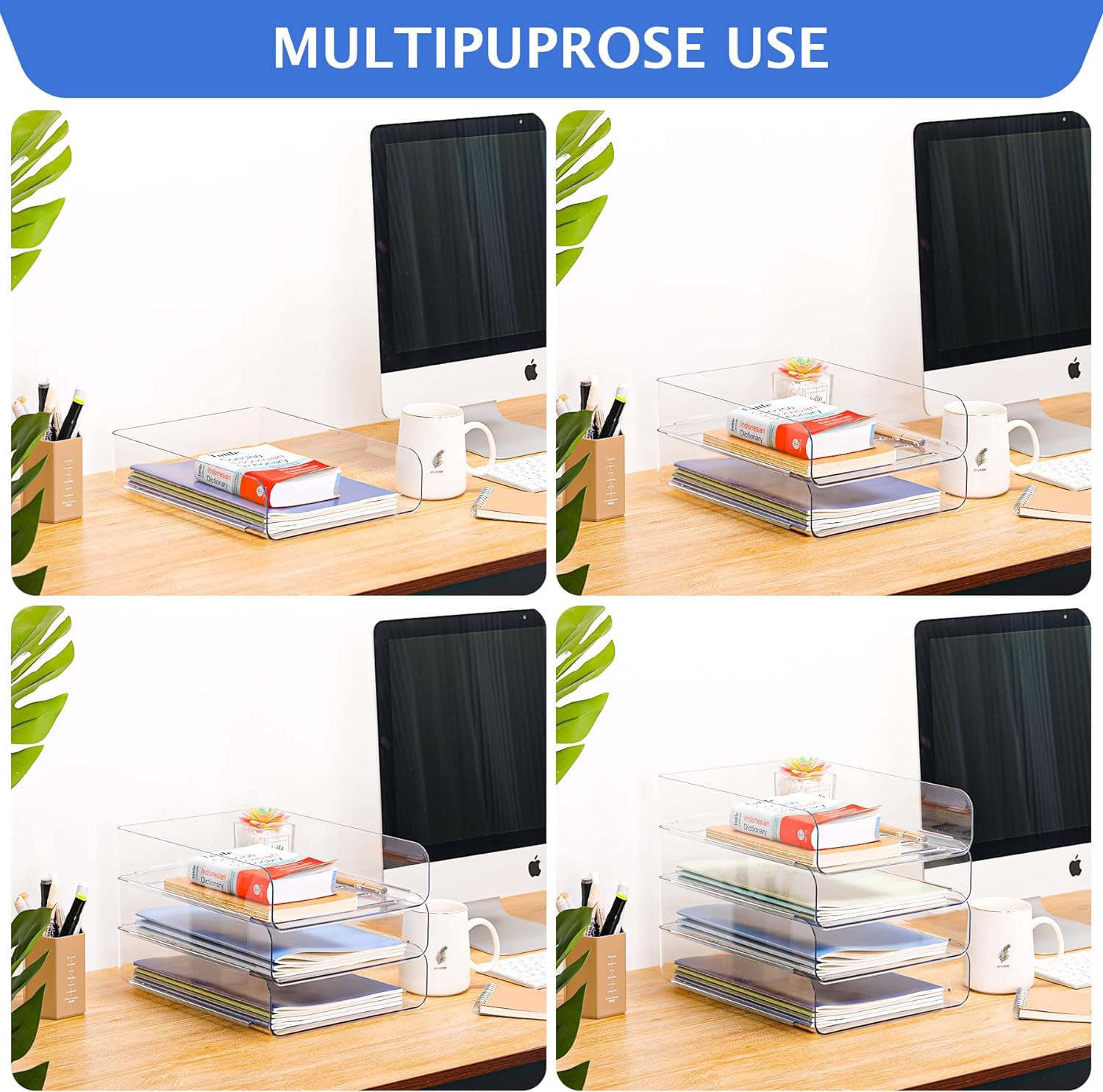- Stylish and Sturdy Desk Organizer - Our paper letter tray is made of thick premium PET material, which features durable and sturdy to use for a long time. The transparent office storage looks very clean and sleek, and it can provide a clean/organized look of your home and office desk for you