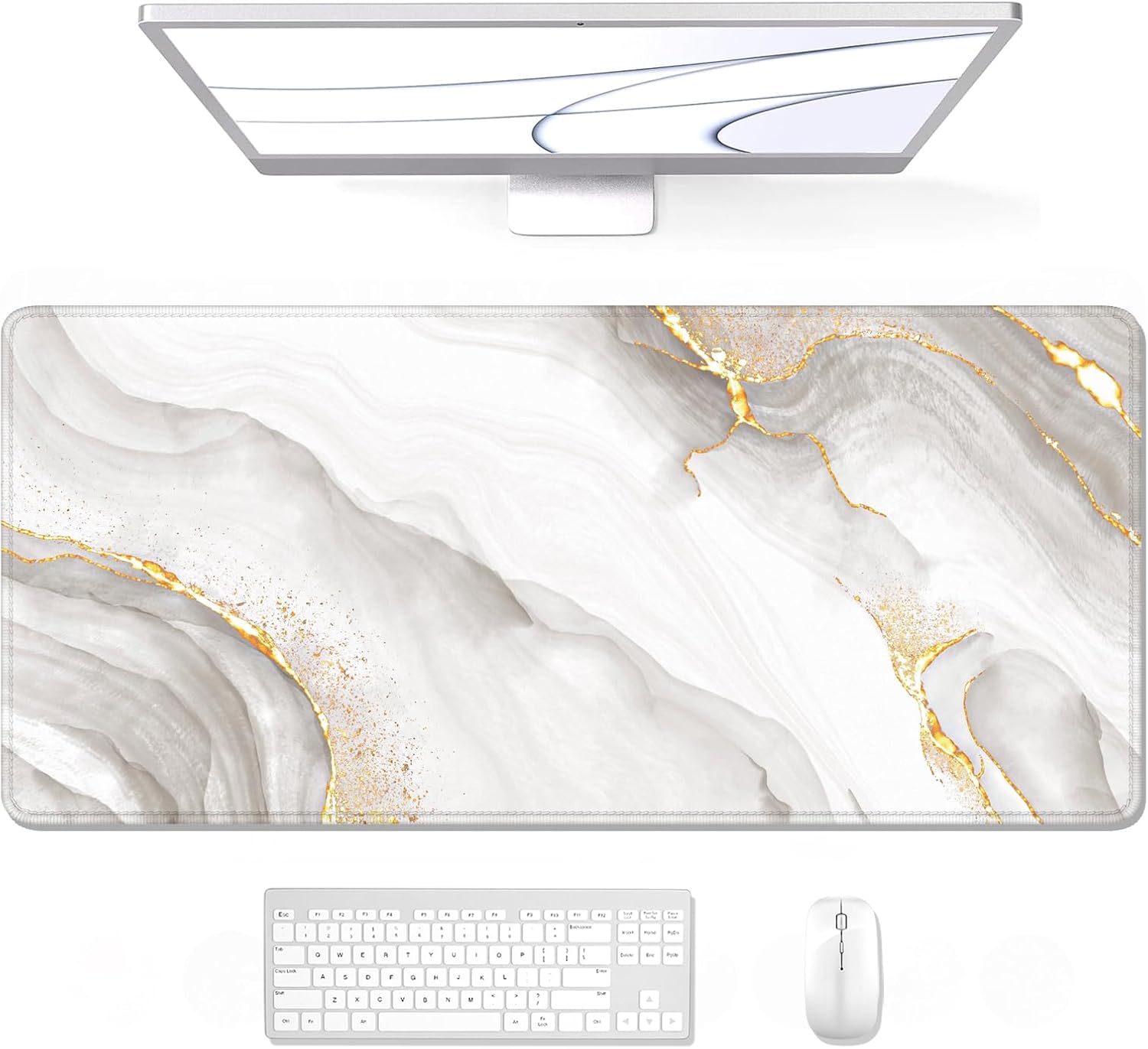 Auhoahsil Large Mouse Pad, XXL Gaming Mousepad, Desk Mat for Desktop, Thick Rubber, Big & Long Size, Stitched Edges, Full Desk Pad for Laptop & Computer, Extended 31.5 x 11.8 in, Gold Gray Marble