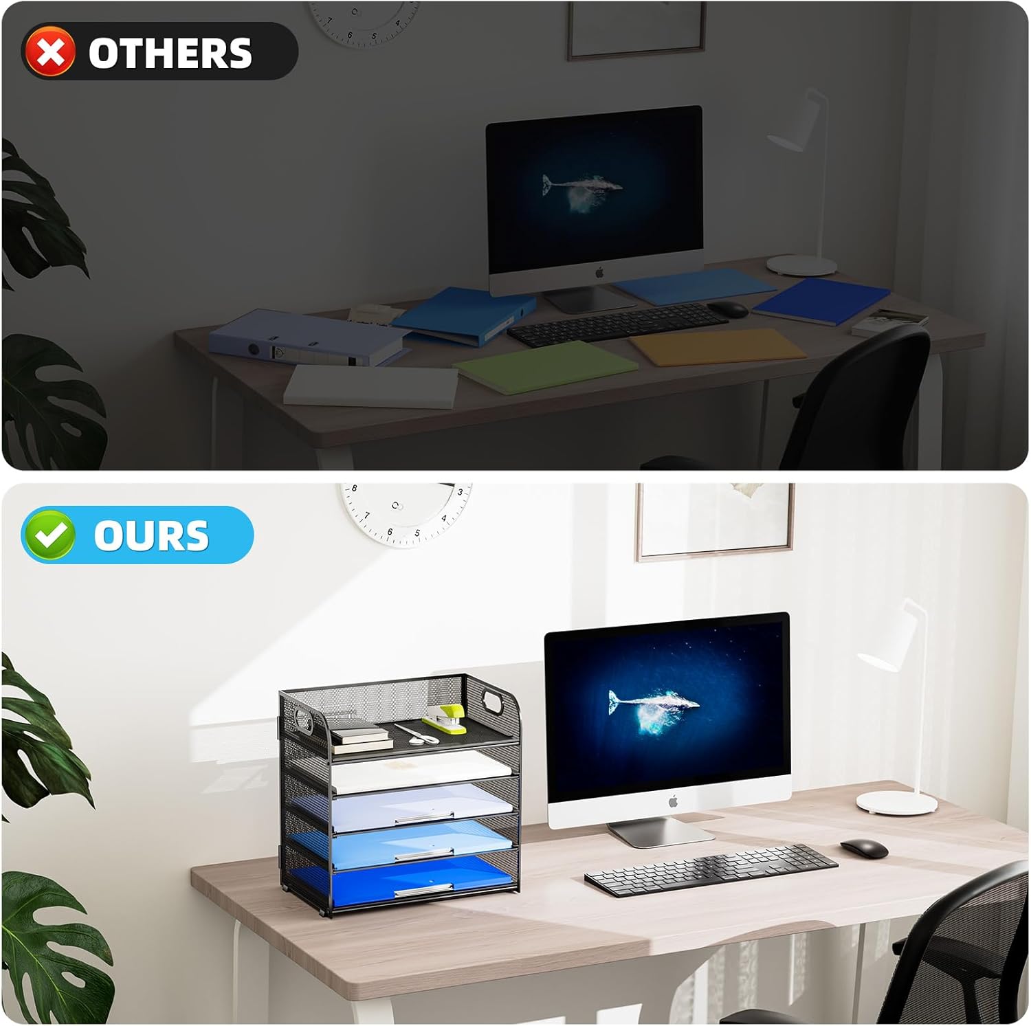 Marbrasse Desk Organizer - 5 Tier Paper Letter Tray, Mesh File Organizer with Handle for Office, School and Home