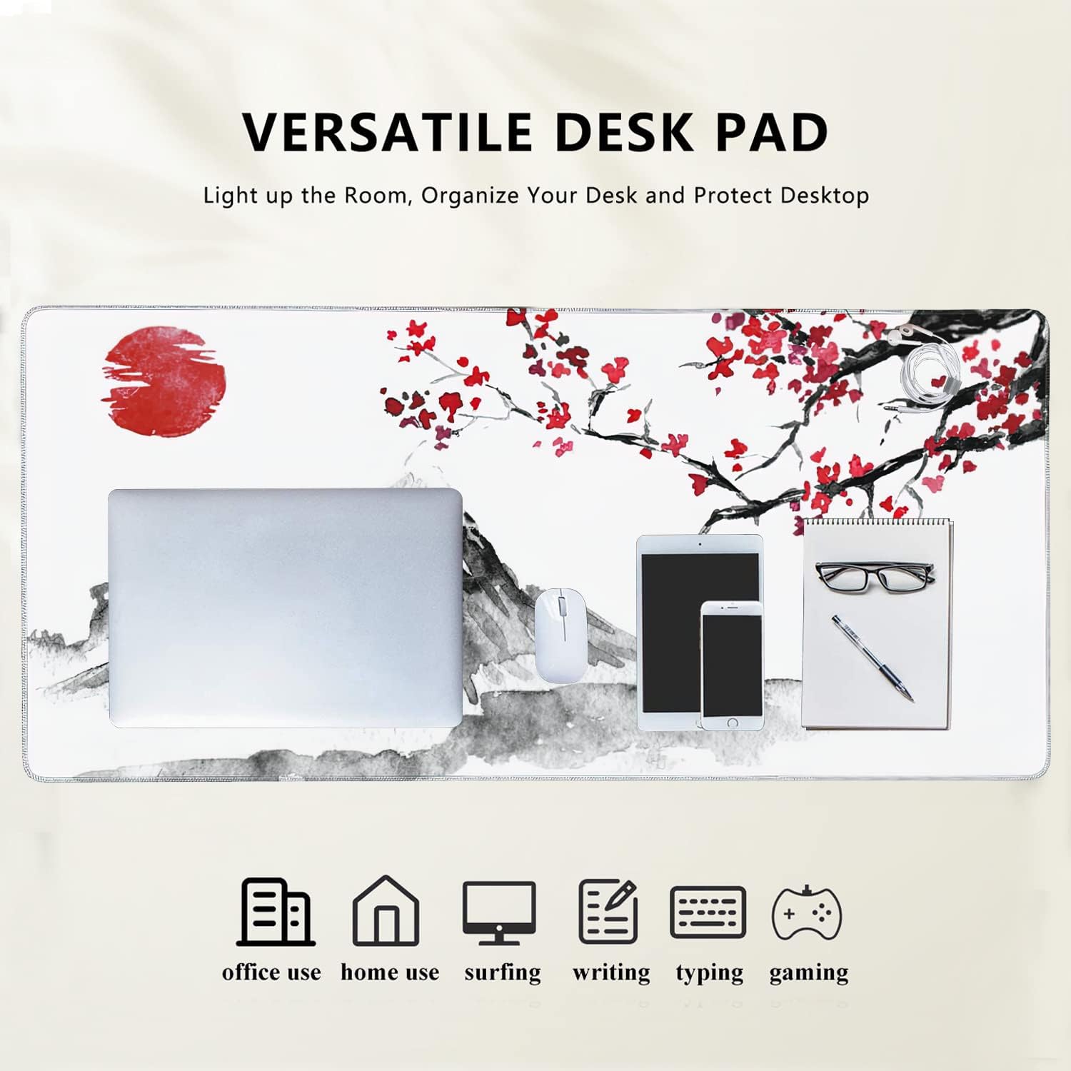 Japan Traditional Sumi-e Painting Extended Gaming Mouse Pad Large Desk Mat with Non-Slip Rubber Base and Stitched Edges,Keyboard Mouse Mat Desk Pad for Work,Game,Office,Home 35.4 * 15.7 Inch