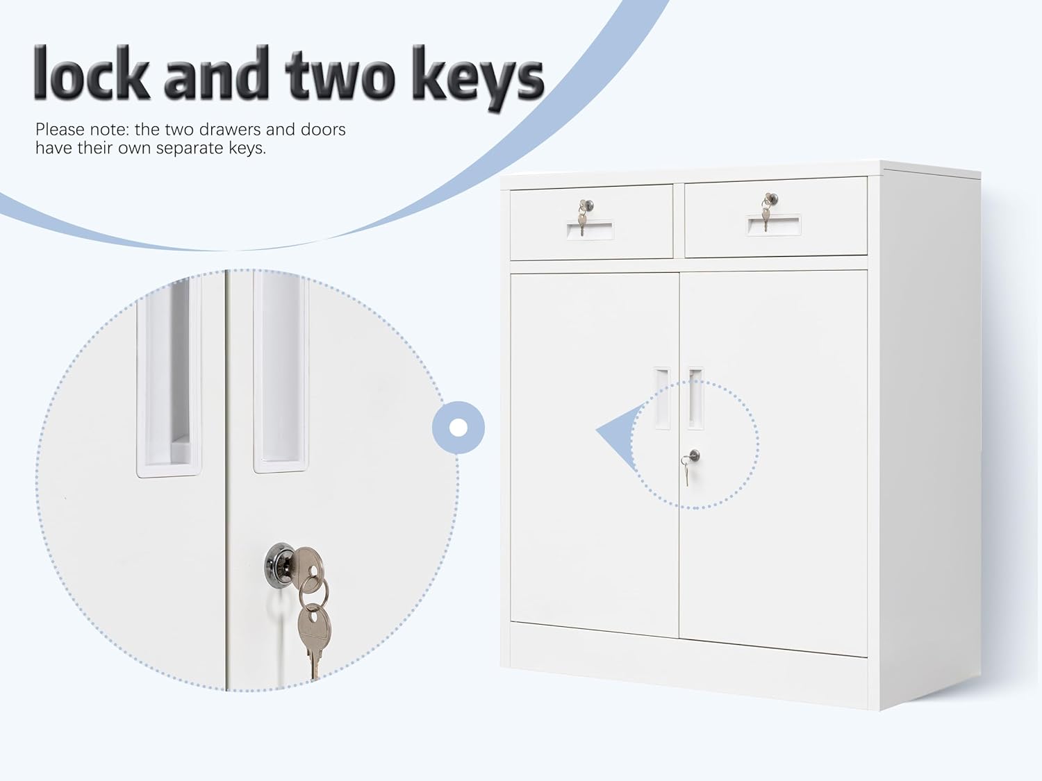 BESFUR Metal Storage Cabinet with Locking Doors and 2 Drawers, 36” Garage Cabinet for Classroom, Home and Office - White