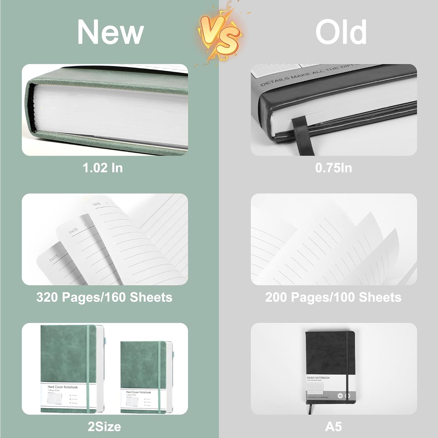 - 320 Pages Paper - Journaling notebooks with 320 pages provides you with enough writing space. A5 notebook journal with 100gsm paper, thicker than normal paper, will not cause bleeding, ghosting or smudging and is suitable for most types of pens.