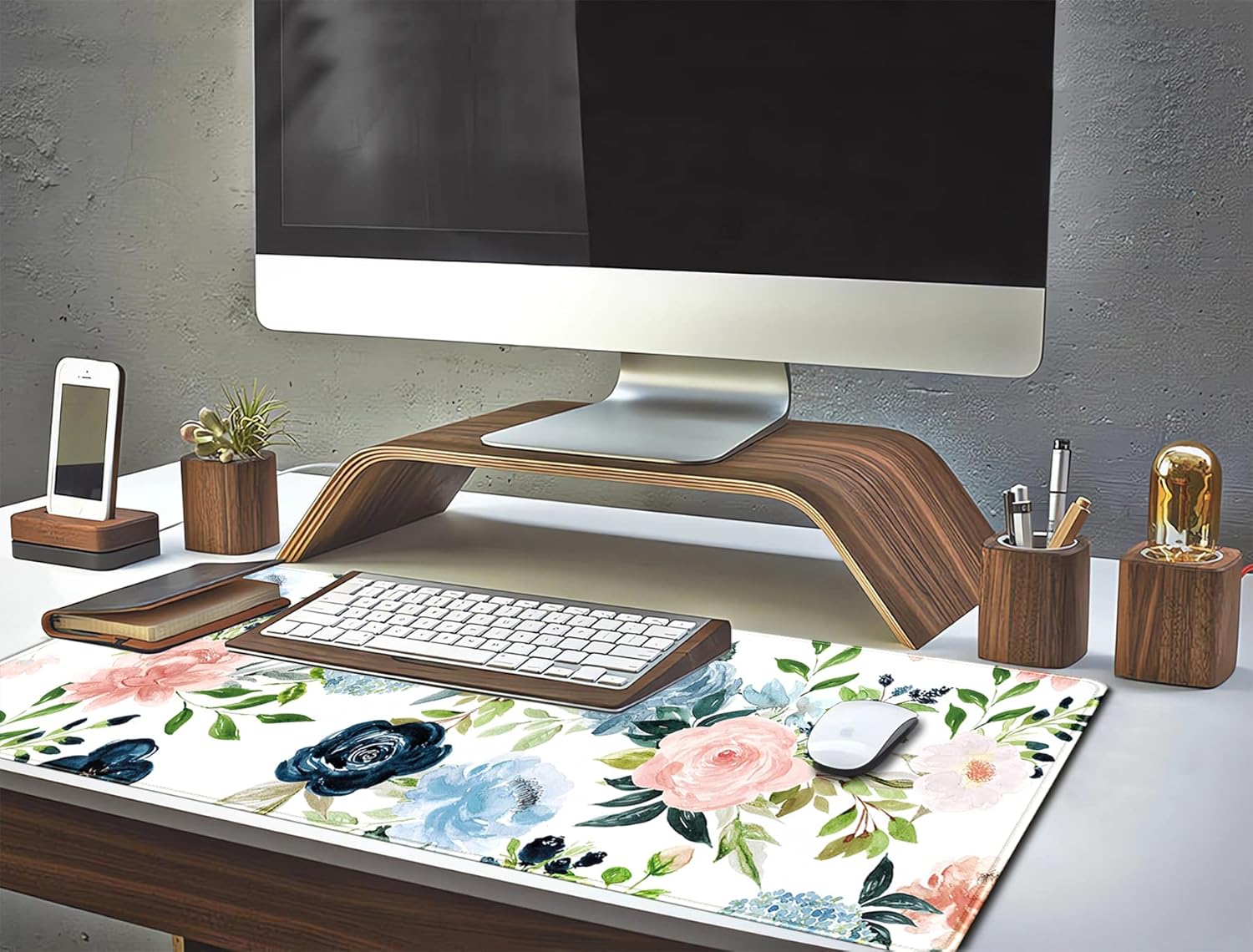 - 【Ultra Large Extended Size 】The flowers desk mats size of 31.5x11.8x0.12 inch will fit your desktop perfect, can put your mouse, gaming keyboard and other desk items. Add color, style and comfort into your workspace.