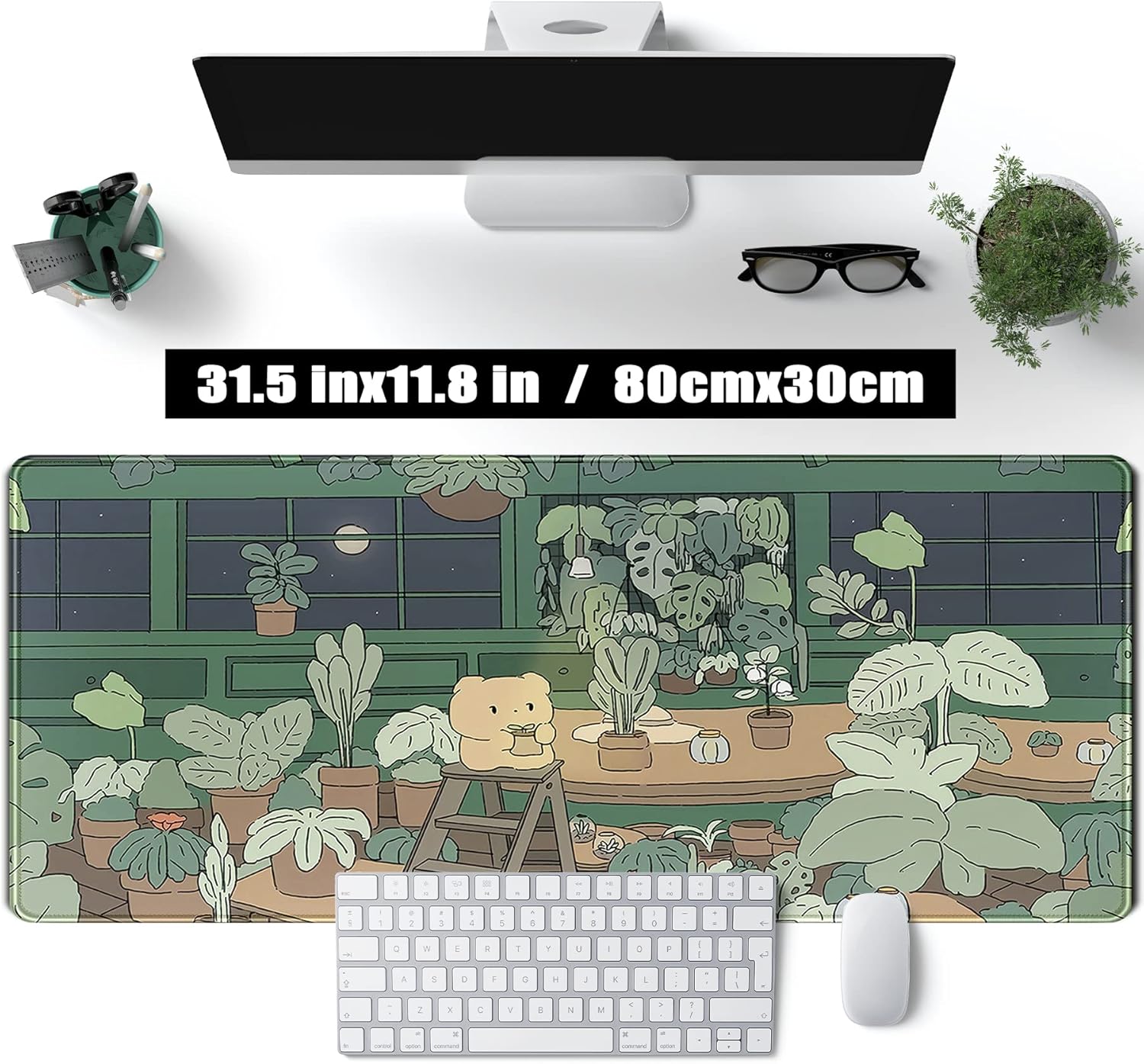 - 【Ultra Large Extended Size 】The green plant cute bear size of 31.5x11.8x0.12 inch will fit your desktop perfect, can put your mouse, gaming keyboard and other desk items. Add color, style and comfort into your workspace.