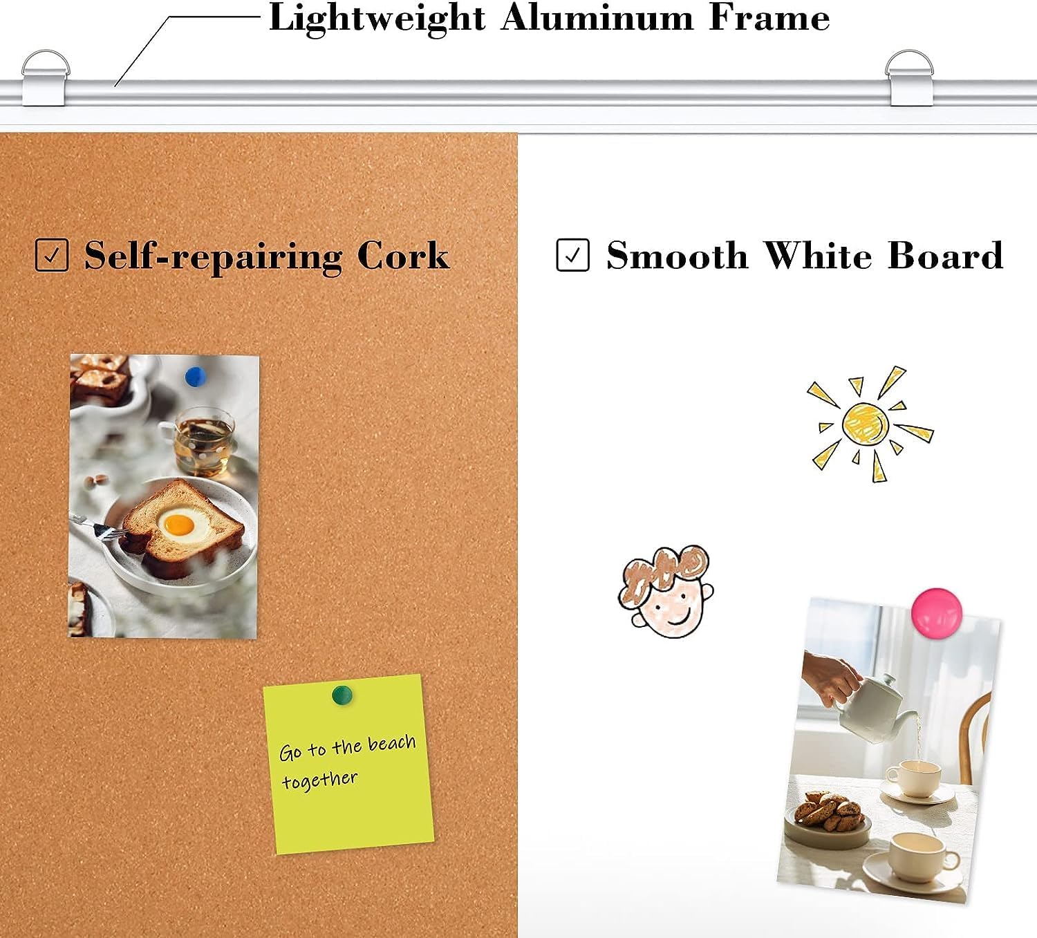 - Binary Boards Combo - Two sides, two displays—magnetic whiteboard clean, self-healing corkboard real. Notes on lock, thoughts aligned, ideas stay sharp