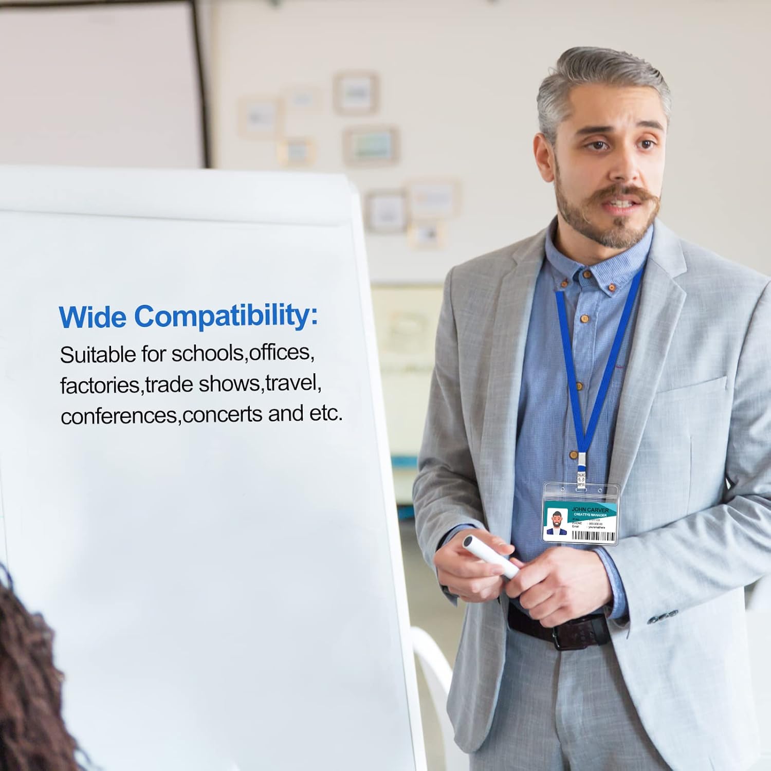 100 Pcs Clear Horizontal Badge Id Card and 100 Pcs Lanyard, Reusable Lanyards for Id Badge Holder Name Tag Badge Holder with Lanyards for Adults Kids Business School Conferences (Blue)