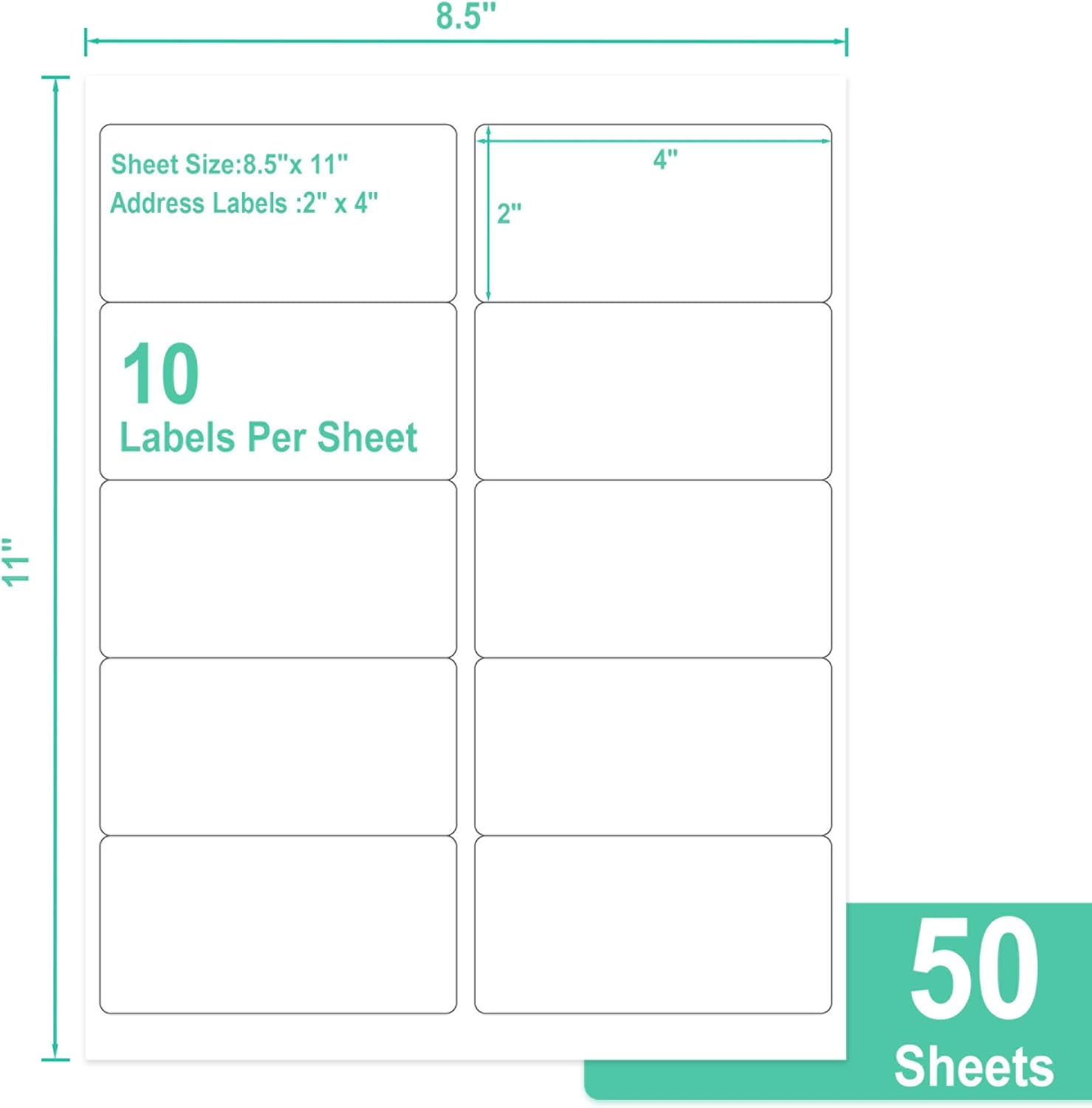 - Package Including:50 sheets, 500 labels 2" x 4" shipping label stickers, sheet size: 8-1/2" x 11" , 10 labels per sheet