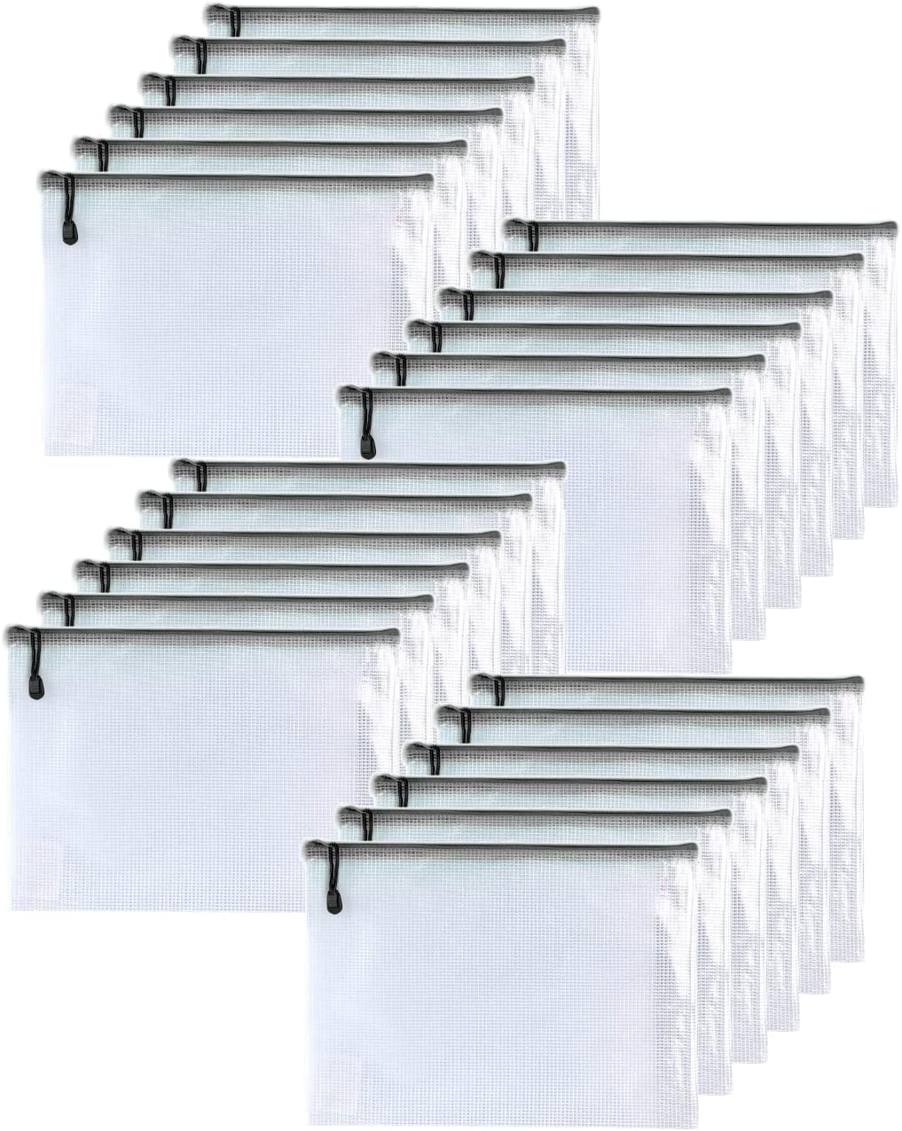 Oaimyy-24PCS-8 x 10" inches-Mesh Zipper Pouch, Plastic Zip File Folders Puzzle Bags for Organizing,for Office Supplies,Travel,Home Storage-Black