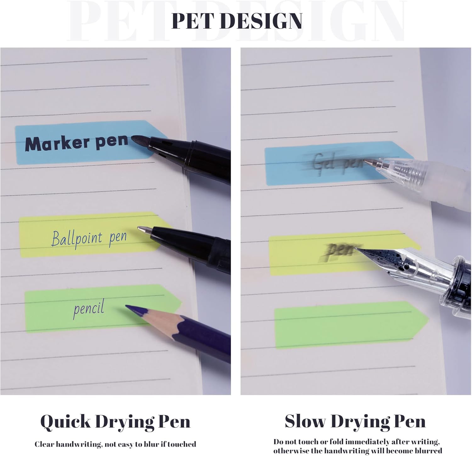 - [MATERIAL] Fluorescent translucent sticky tabs are made of PET material and a special adhesive. Bright colors, stylish and simple design.