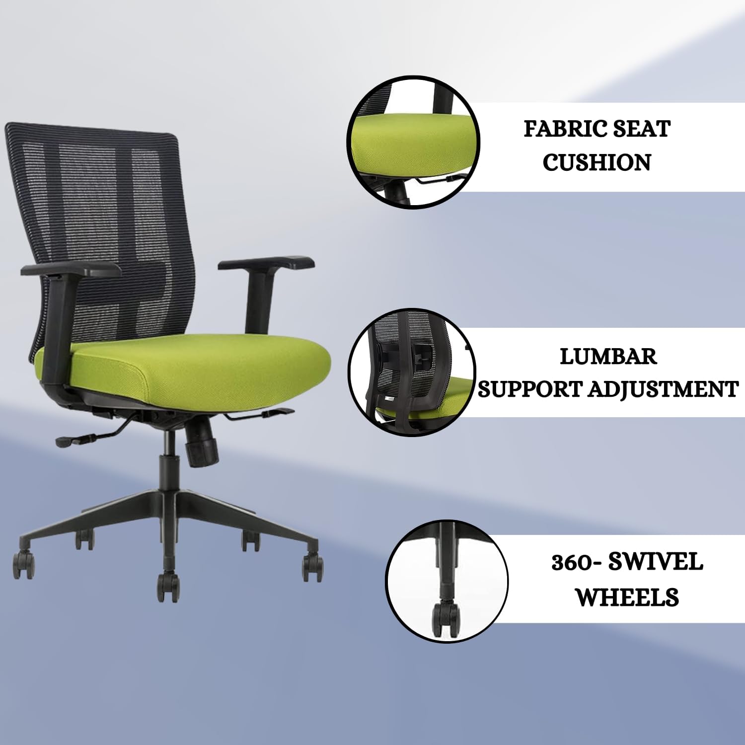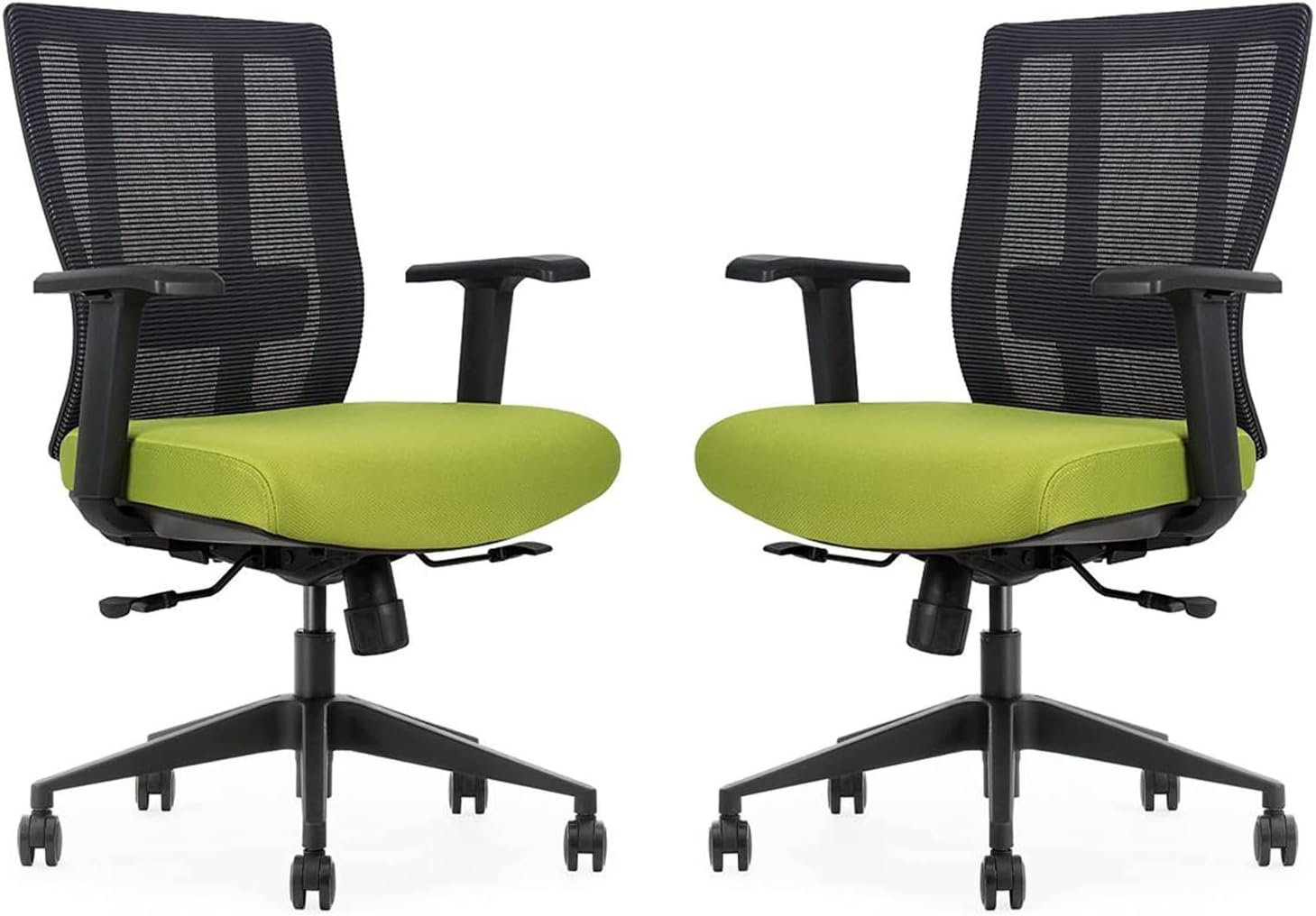 Ergonomic Office Chair - Breathable MESH - Back Adjustable Lumbar Support with 3-D ARMRESTS TILT Function and 360-DEGREE Swivel Wheels Comfortable Wide SEAT - Home Office Chair (Green) Pack of 2