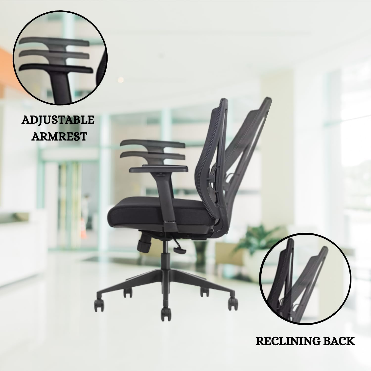 - Breathable Mesh: The mesh back on this office desk chair provides support while keeping your back cool and comfortable. Compared to conventional chairs, the mesh allows air to circulate, keeping your back sweat-free and allowing you to sit comfortably for longer periods of time.