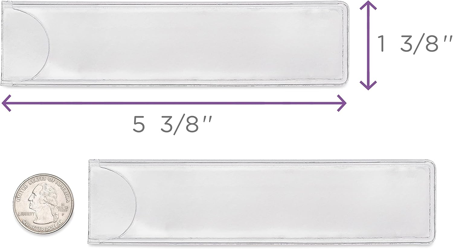 Carstens - 60 Pack, Clear Binder Spine Insert Adhesive Pockets, 5.375 x 1.375 Inch Heavy Duty Vinyl (1639-0010) - Ideal for 1.5-4 Inch Ring Binder Spines and Medical Charts