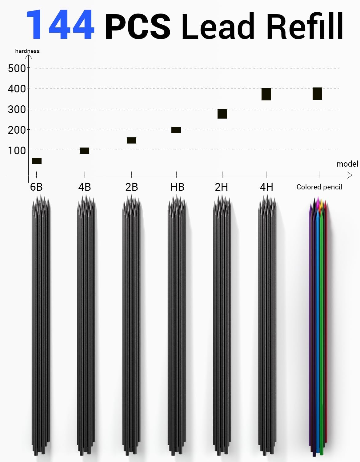 - Value Mechanical Pencils Set: Come with 3pcs sketch pencils 2.0 mm, 12 tubes lead refill (total 144pcs, 24x HB, 24x2H, 24x2B, 24x4B, 24x CR, 12x4H, 12x6B), 3pcs eraser, 2pcs handhold sharpener, 1 gift plastic box