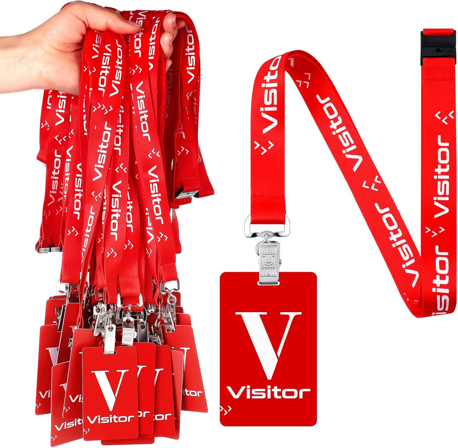 - Easy to Use: visitor pass card and lanyard are printed with white words Visitor featuring noticeable red hue and bold texts, easy to notice from a distance; The breakaway buckle allows you to easily and quickly separate cards, in case your volunteer lanyard get stuck in some places