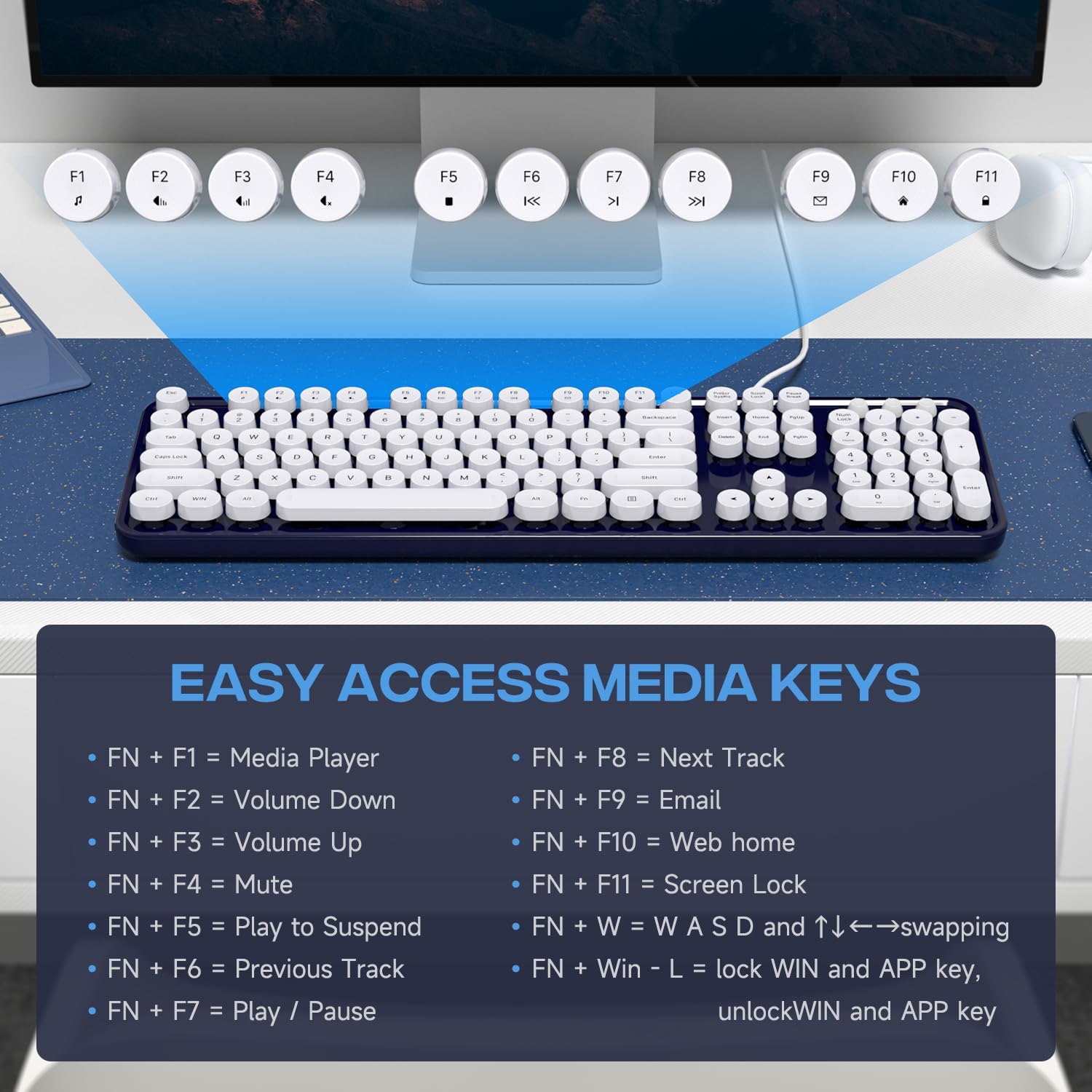 - 【Retro Wired Keyboard】Cute round keycaps, crisp and sweet sound, perfect knocking feel, let you find the feeling of a retro typewriter.