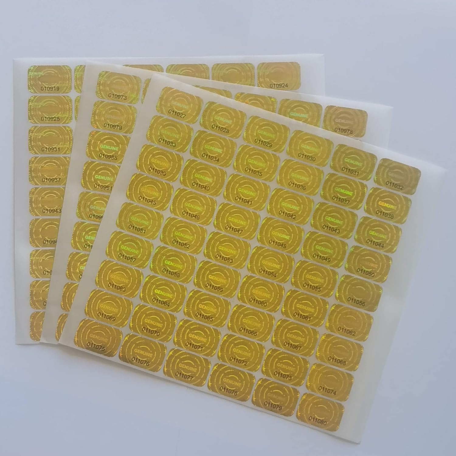 500 pcs Tamper Proof Hologram Stickers Silver High Security Tamper Evident Warranty Seal Void Genuine Authentic Holographic Labels/Stickers w/Unique Sequential Serial Numbering 0.95X0.6 inch (Gold)
