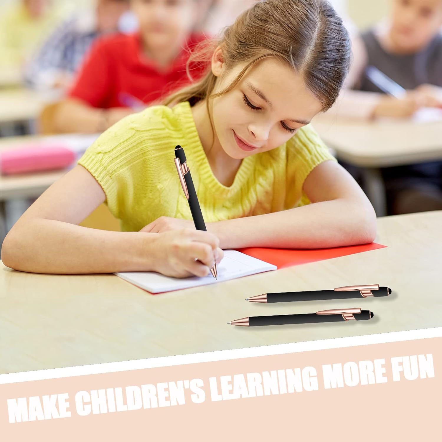 8 Pcs Blue Ink Ballpoint Pen with Stylus Tip 2 in 1 Stylus Ballpoint Pen Metal Pens Stylus Pen for Touch Screens School Office Coworkers (Black Rose Gold)