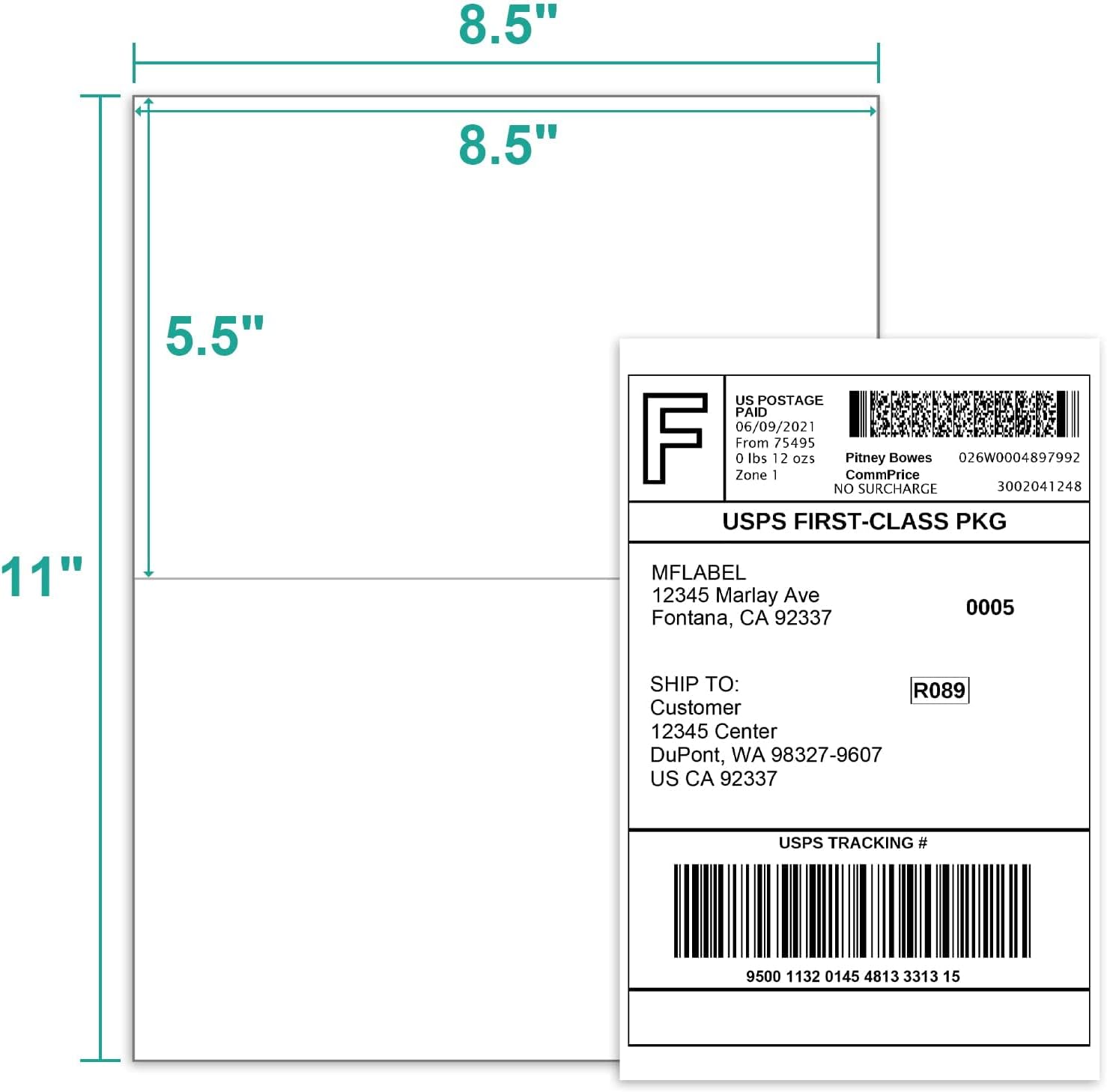 MFLABEL Half Sheet Label Laser/Ink Jet Shipping Label 8.5 x 11 Inches Packaging Labels, Address Labels for Laser & Inkjet Printers, 3000 Count(1500 Sheets)