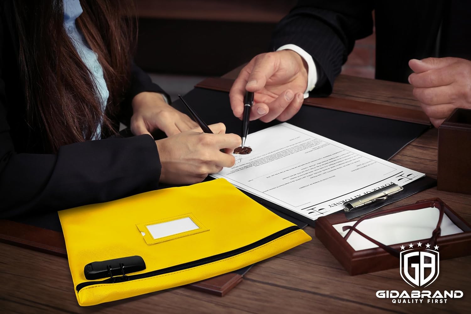 Yellow Notary Bag with Lock | 14x11 inch | Zipper Supplies Bag | Locking Document Case for Notary Kit, Stamp, Embosser, Ink Pad, and Valuables