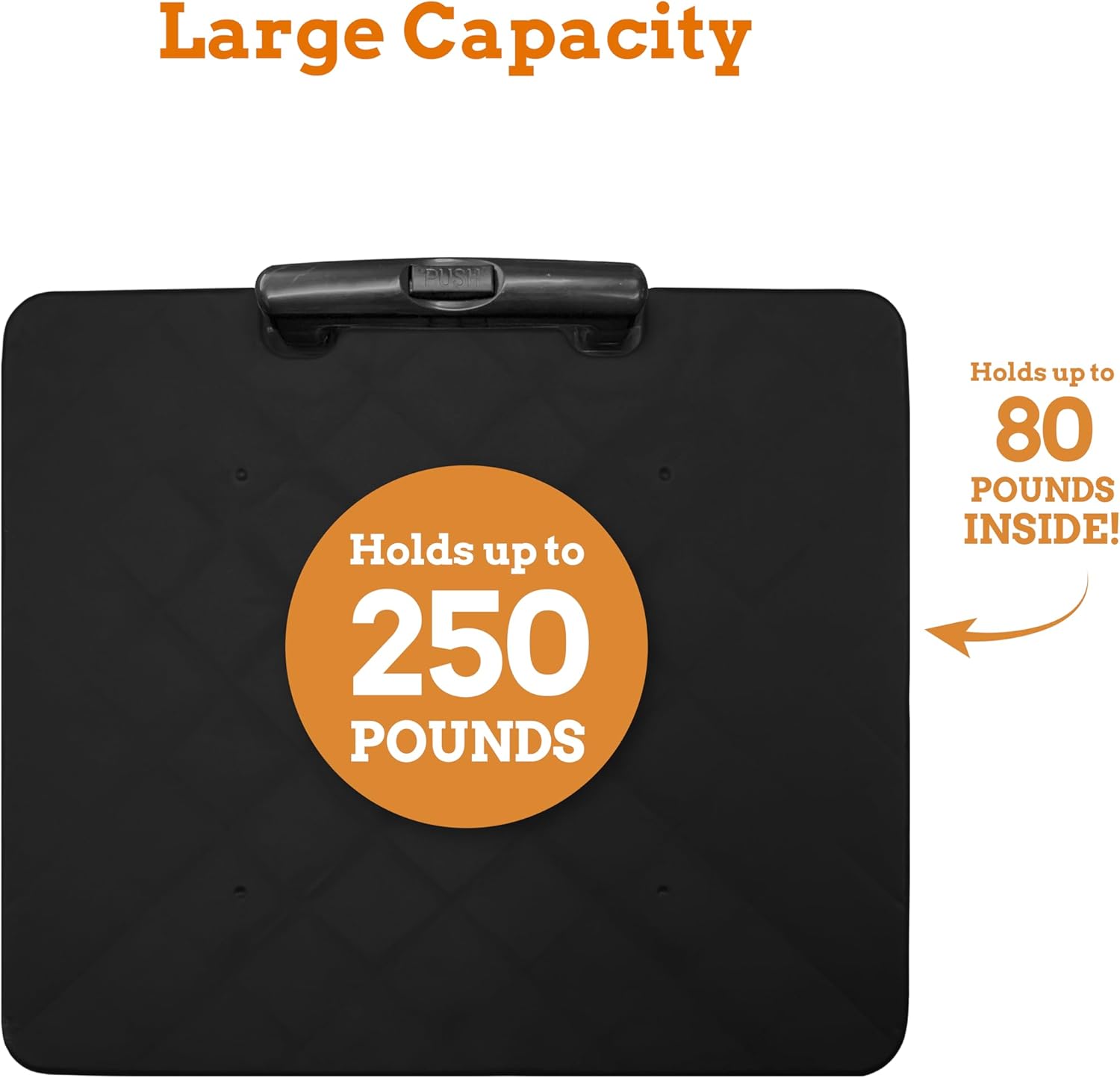 - LARGE CAPACITY 2 WHEELED UTILITY CART: Super Strong Heavy-Duty Construction with Lid- Holds Up To 80 Lbs: Collapses To 3" When Folded Flat / 16.5" When Fully Expanded