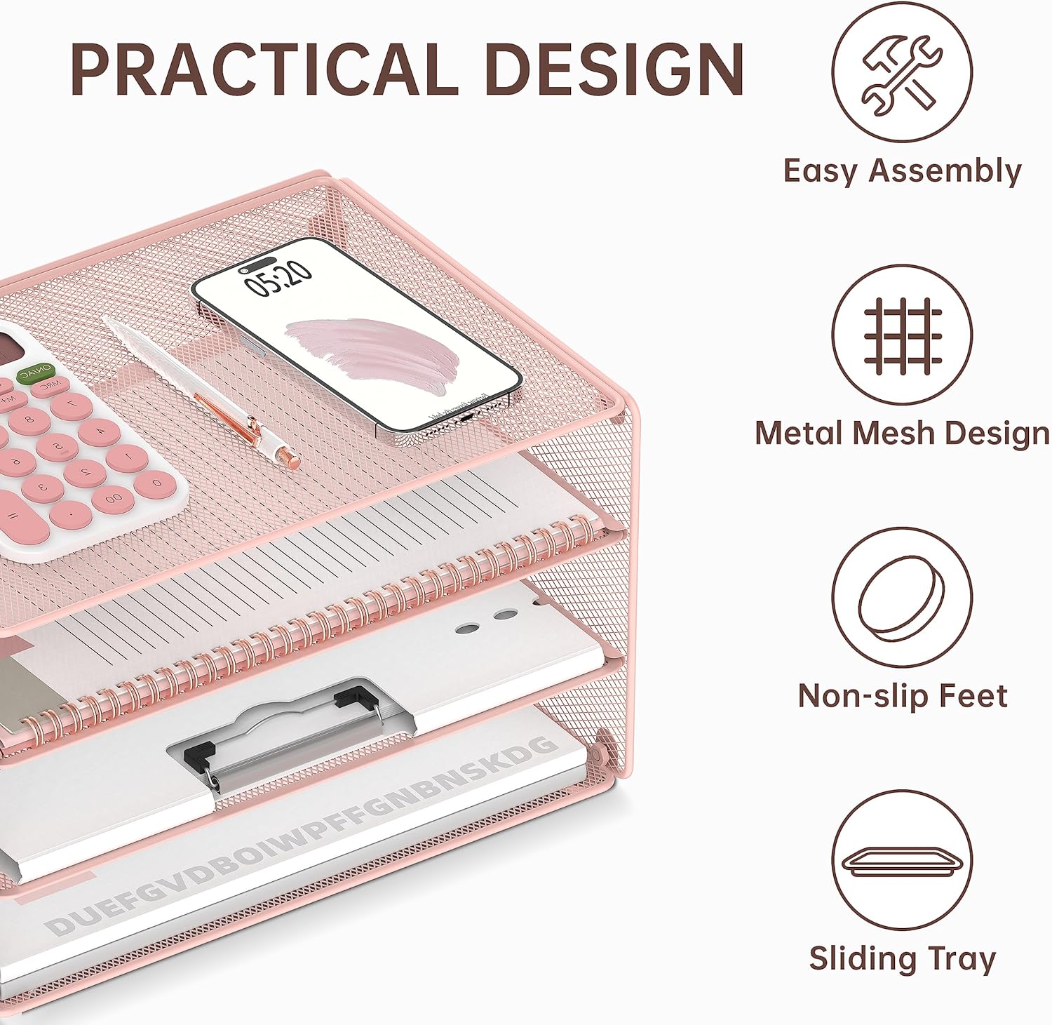- 3-Tier Design: "Daltack" simple and stylish pink desk organizer, keep your desk organized in a different new way with our paper organizer for desk.