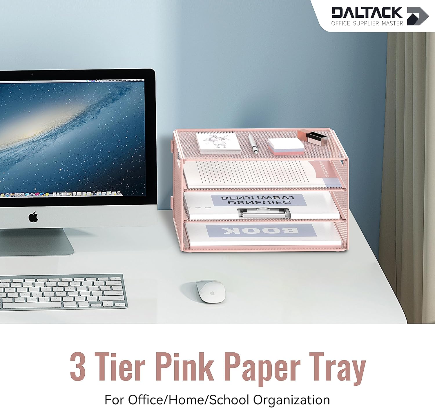 - 3-Tier Design: Daltack 3 tier pink desk organizer tray is a wonderful desktop paper organizer for your office, home, school, or dorm. Our paper organizer for desk is simple and stylish, keep your desk organized in a different new way.