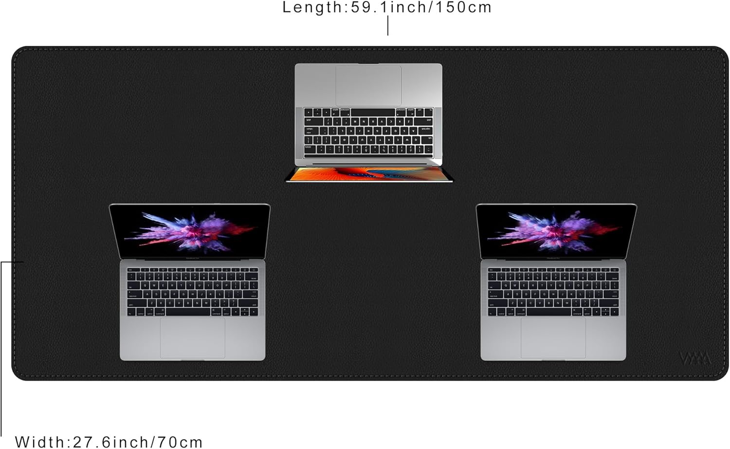 Vyaaa Leather Desk Mat, 59“ x 27.6” PU Leather Desk Pad Protector, Waterproof Extra Large Desk Mat, Large Mouse Pad,Desk Mats on top of Desks for Home or Office (Black)