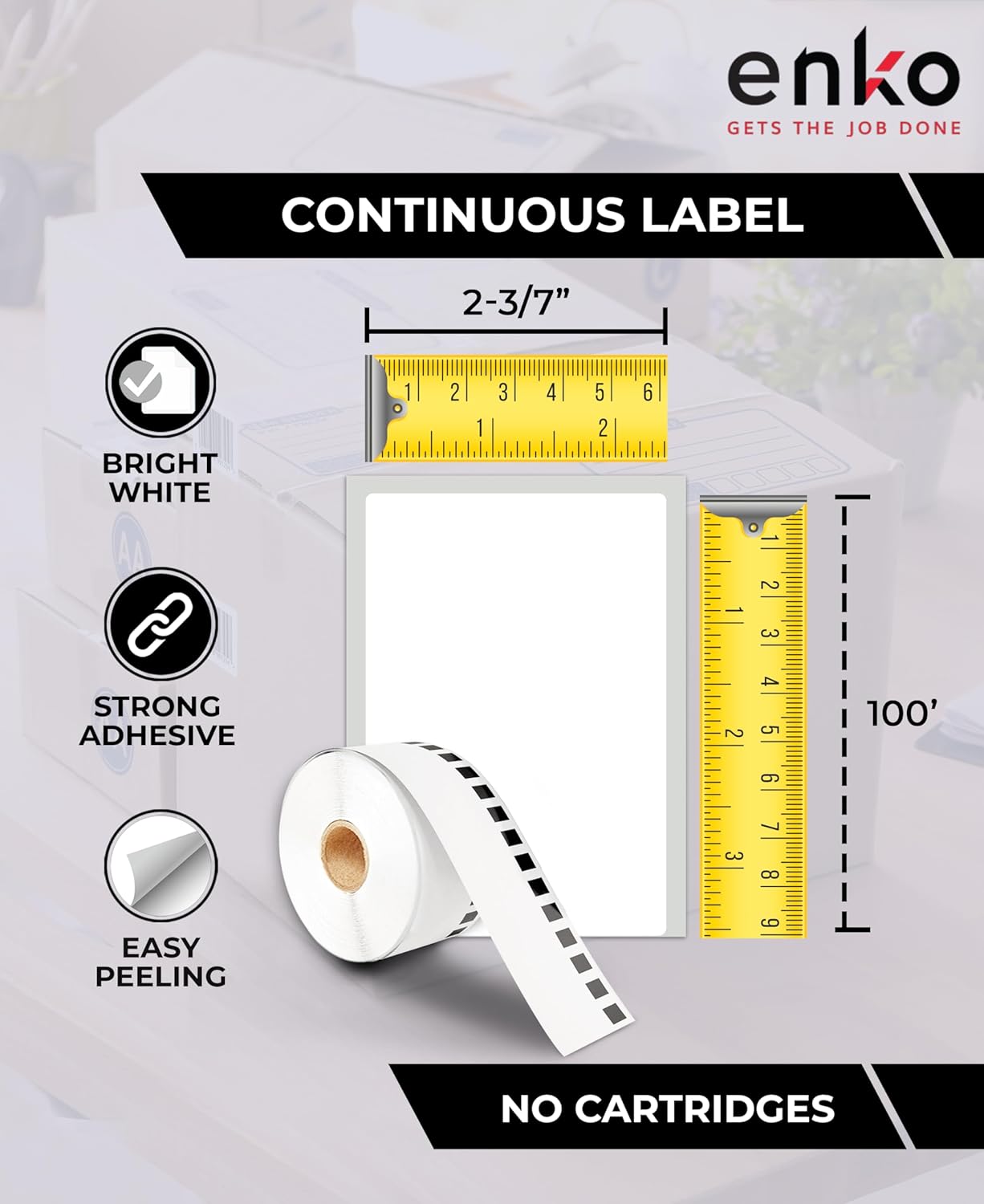 enKo - Compatible DK-2205 Continuous Adhesive Thermal Labels (2.4 Inch x 100 Feet) Compatible Labels for Brother Label Printer QL-820NWB QL-800 QL-810W - [12 Rolls, No Cartridge Frames]