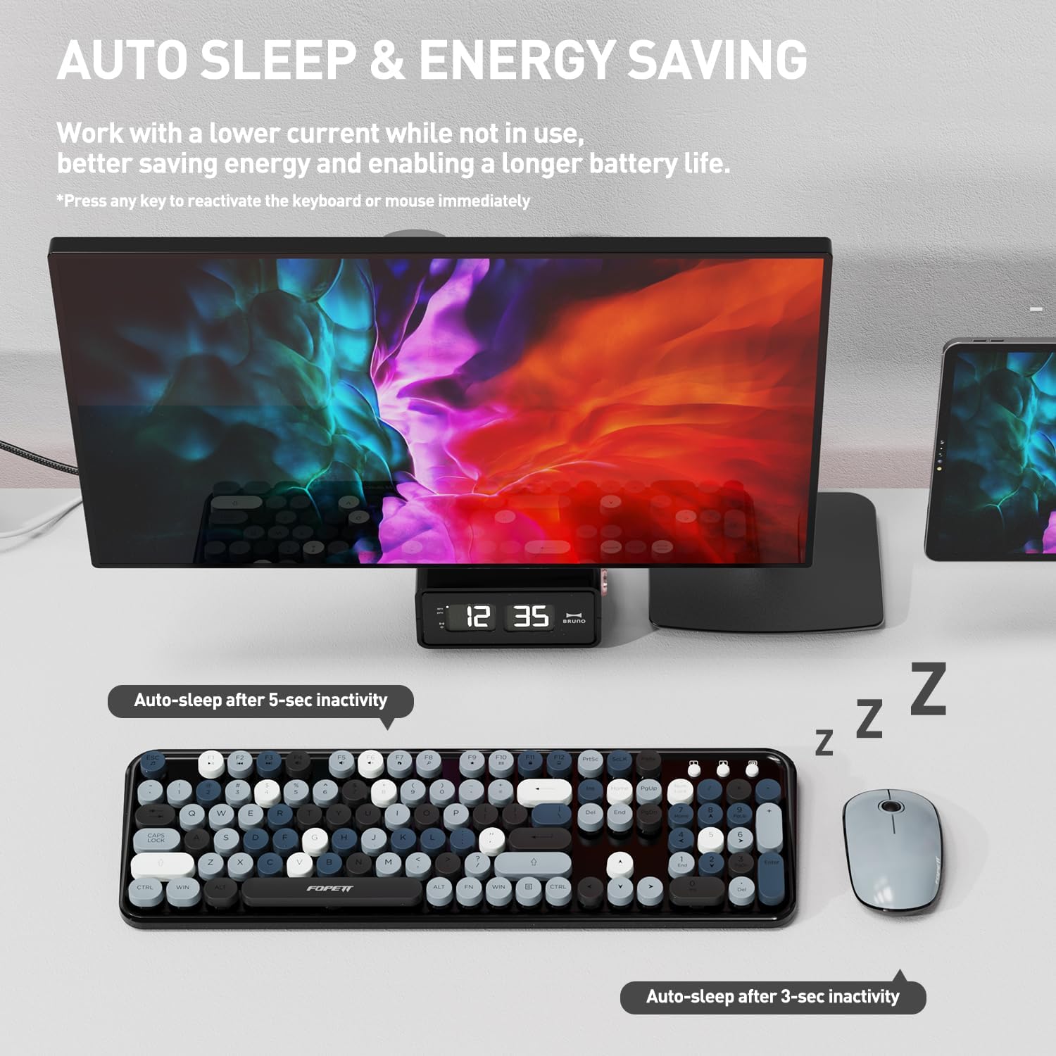 - 【Full-Size keyboard with Detachable Round Keycaps】The typewriter keyboard wireless has blue retro round keys and the silent click of the quiet mice will allow you to do your job without disturbing others. The mini mouse is with modern ergonomic design, Fixed DPI :1200. All circle buttons can be disassembled, put in water to clean.
