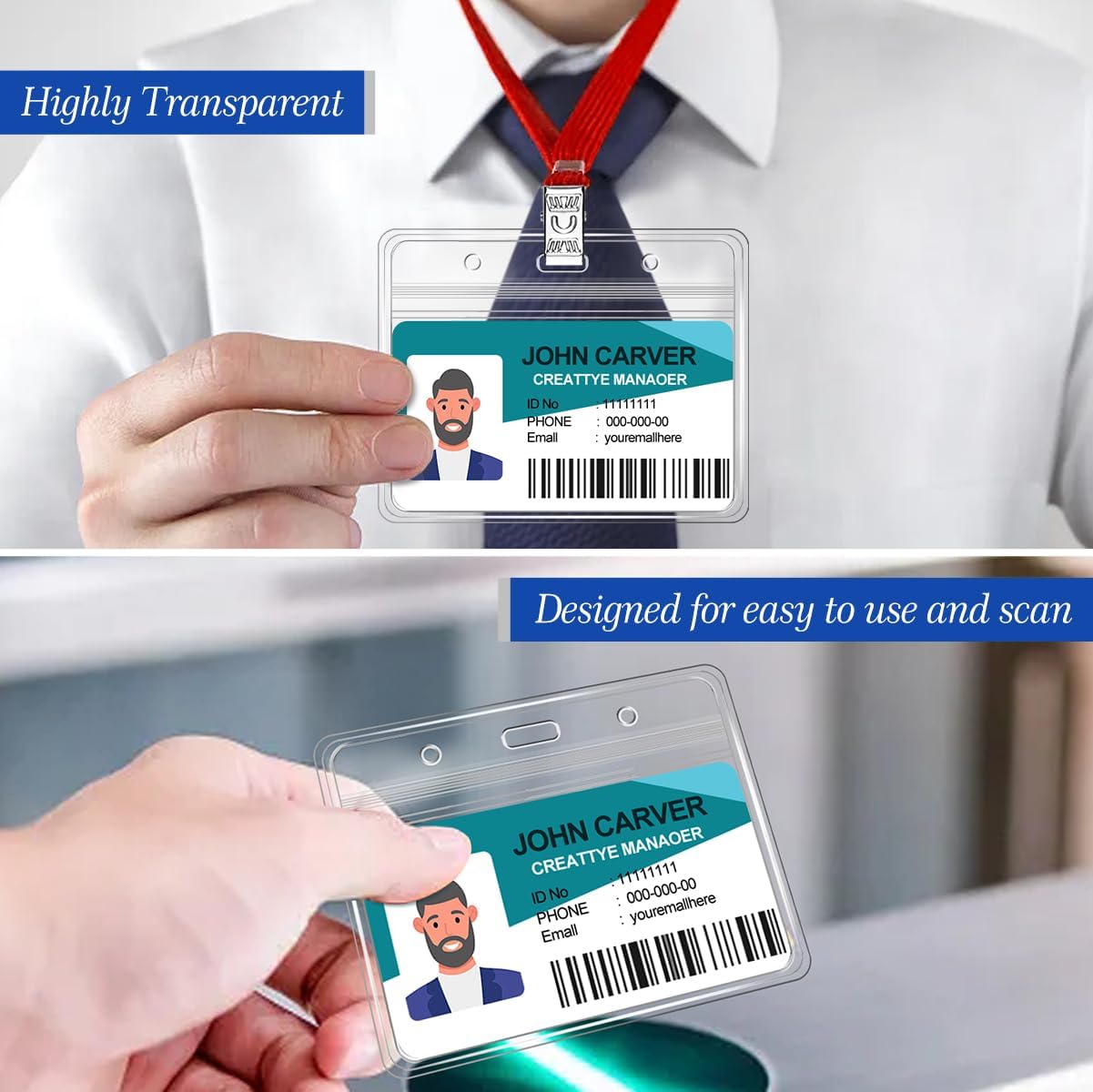- Secure Protection: The ID card holder features a resealable zip lock that is easy to open and close, providing added security for your card. The Badge holders are designed with a dual-use hanging slot/holes, allowing you to easily attach it to a lanyard clip