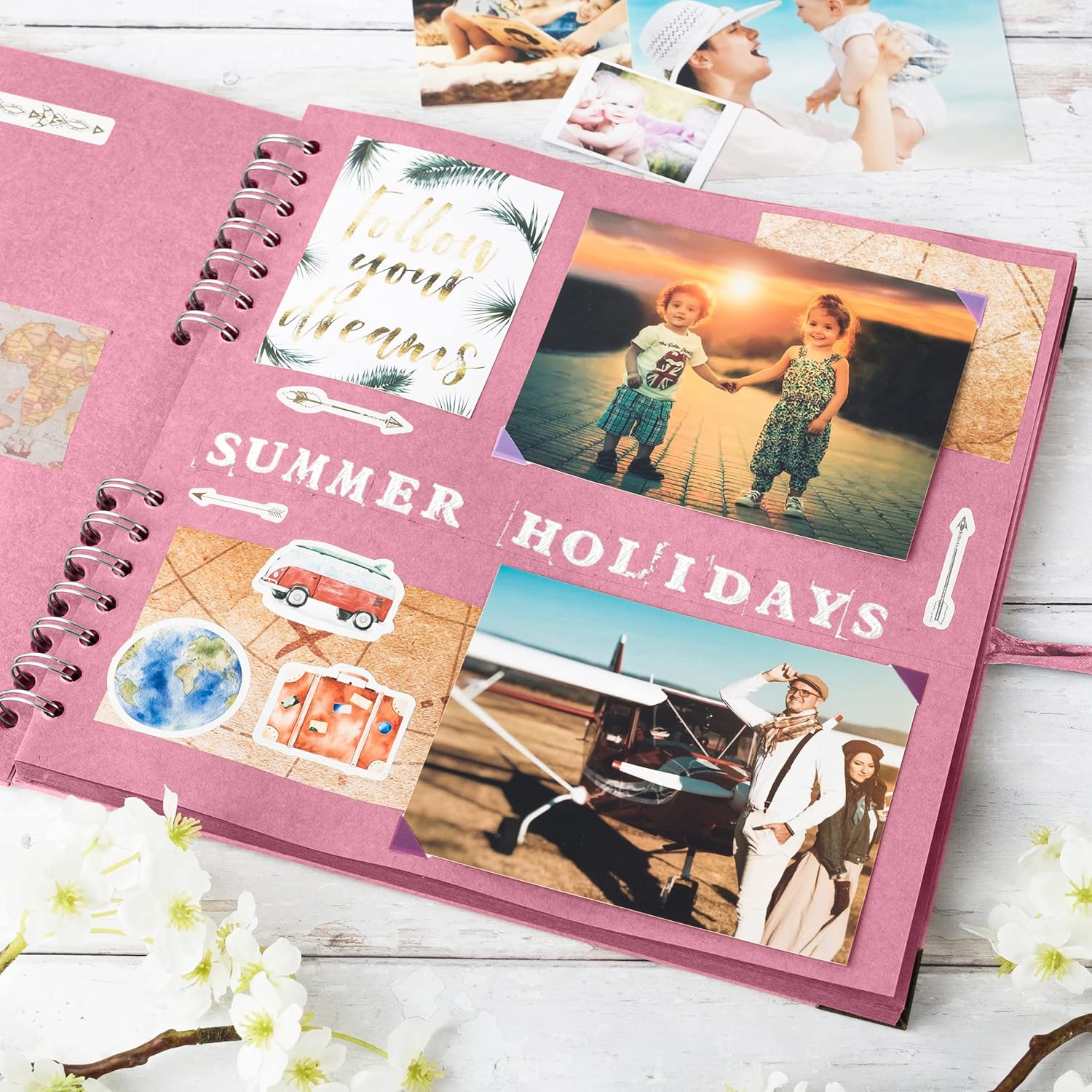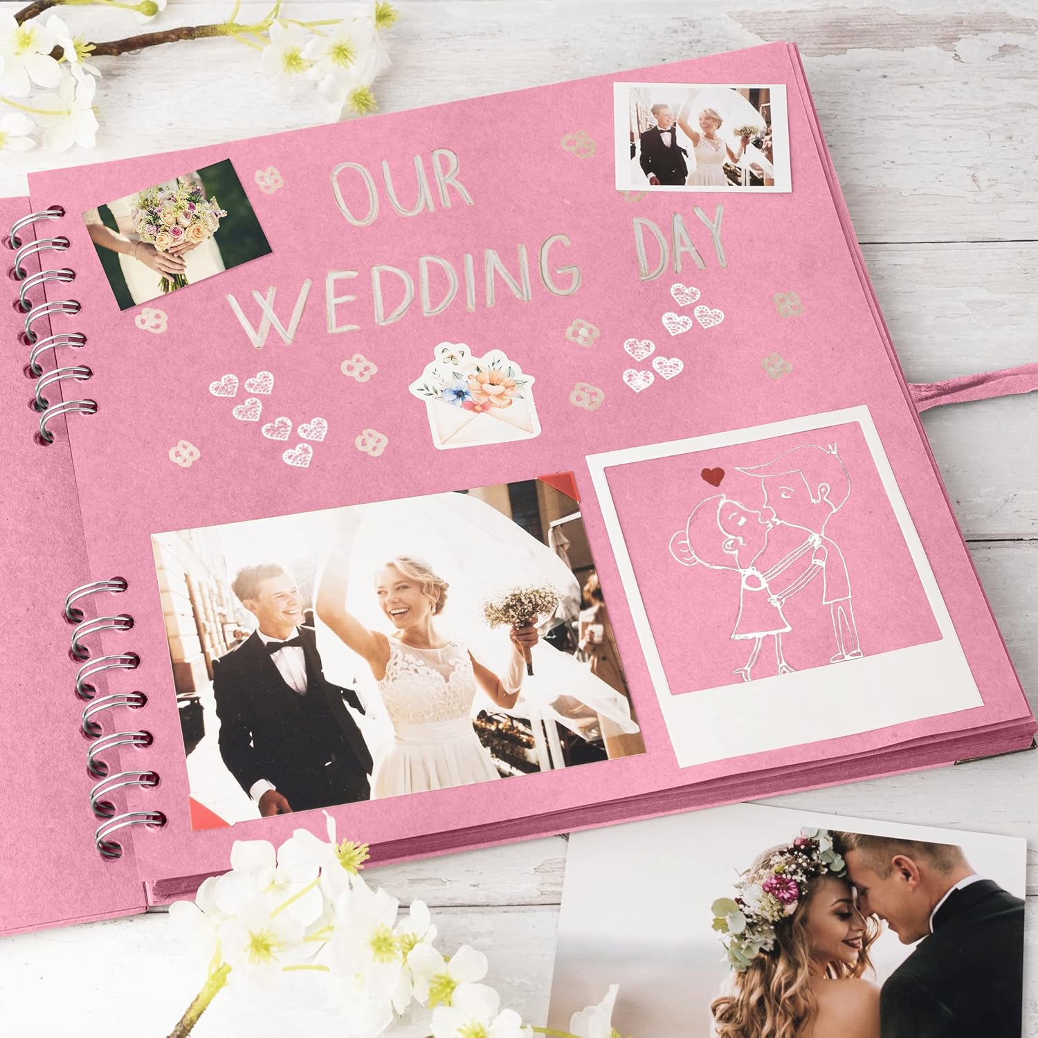 - The spiral bound spine allows the photo album self adhesive pages to expand to fit in your photos, postcards, souvenirs. You can tie the ribbon into a bow or other style that you like and make your photo album scrapbook as individual as your memories and keep them endlessly