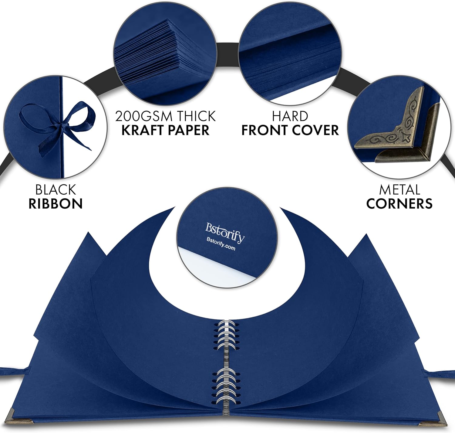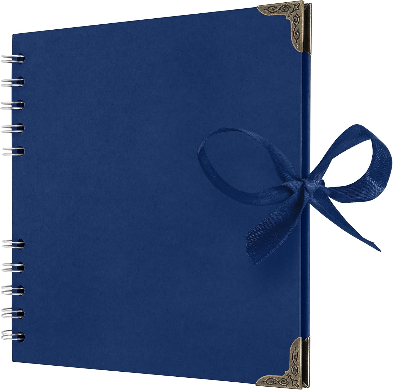 Bstorify Square Scrapbook Photo Albums 7 x 7 Inch Blue Hardcover with Ribbon Closure - Ideal for Scrapbooking, Art & Craft Projects