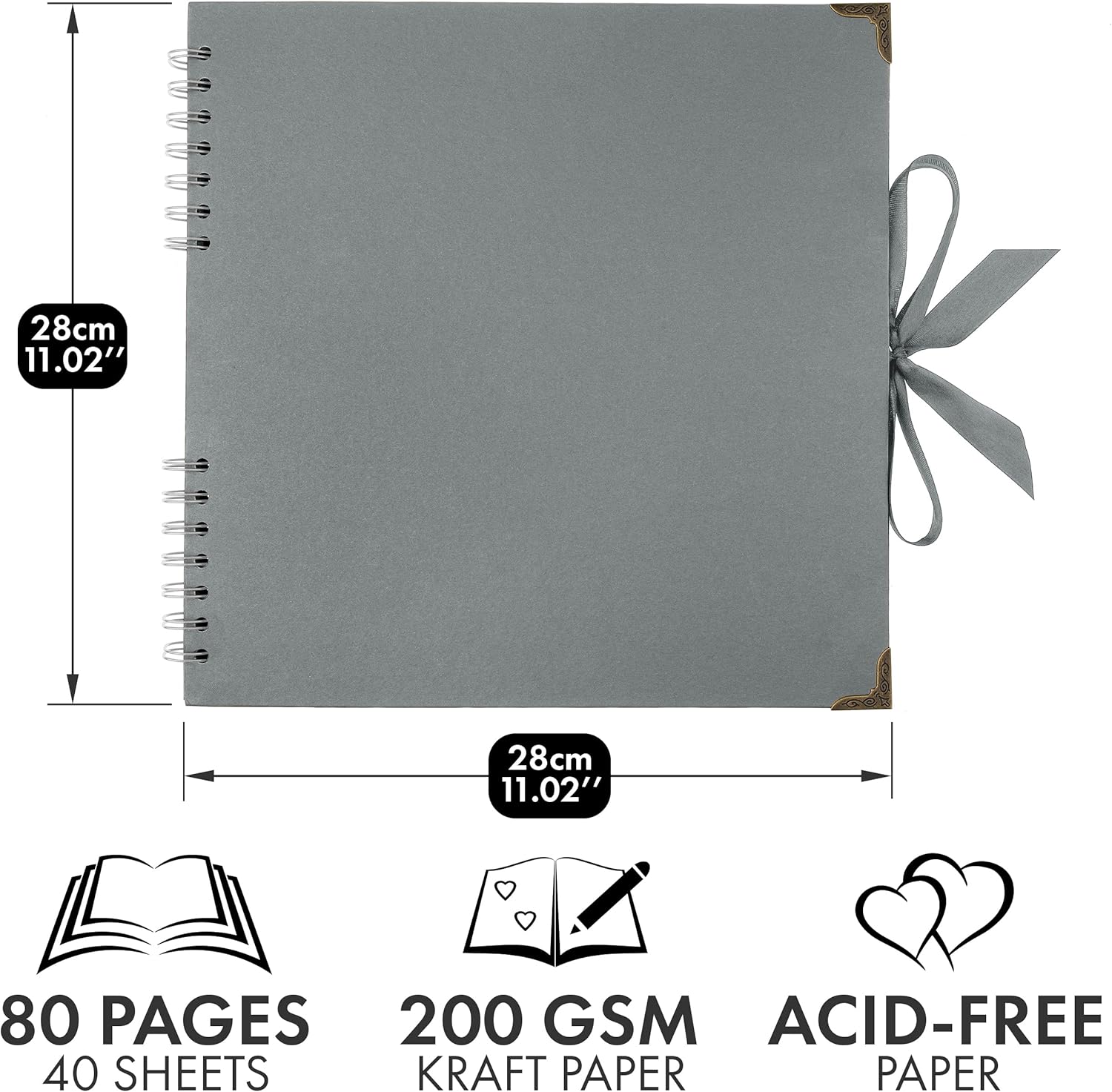 Bstorify Square Scrapbook Photo Albums 80 Pages (11 x 11 Inch) Grey Thick Paper, Hardcover, Ribbon Closure - Ideal for Your Scrapbooking Albums, Art & Craft Projects (Grey, 11 x 11 Inch)