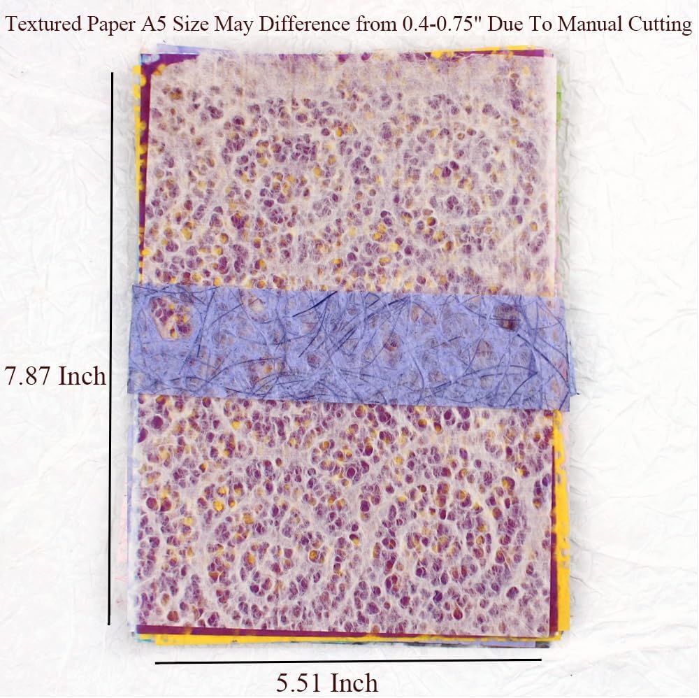 - VARIETY COLORS TEXTURED PAPER: You will get 20 sheets of A5 size scrapbook papers with a variety of colors.12 Sheets of thick fiber textured paper and 8 sheets of thin mulberry paper