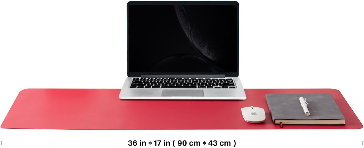 Leather Desk Mat - Non-Slip PU Desk Pad for Office and Home - Desk Organization and Accessories - Ideal for Large Mouse Pad and Desk Mats on Top of Desks (Rose Red,36"x 17")