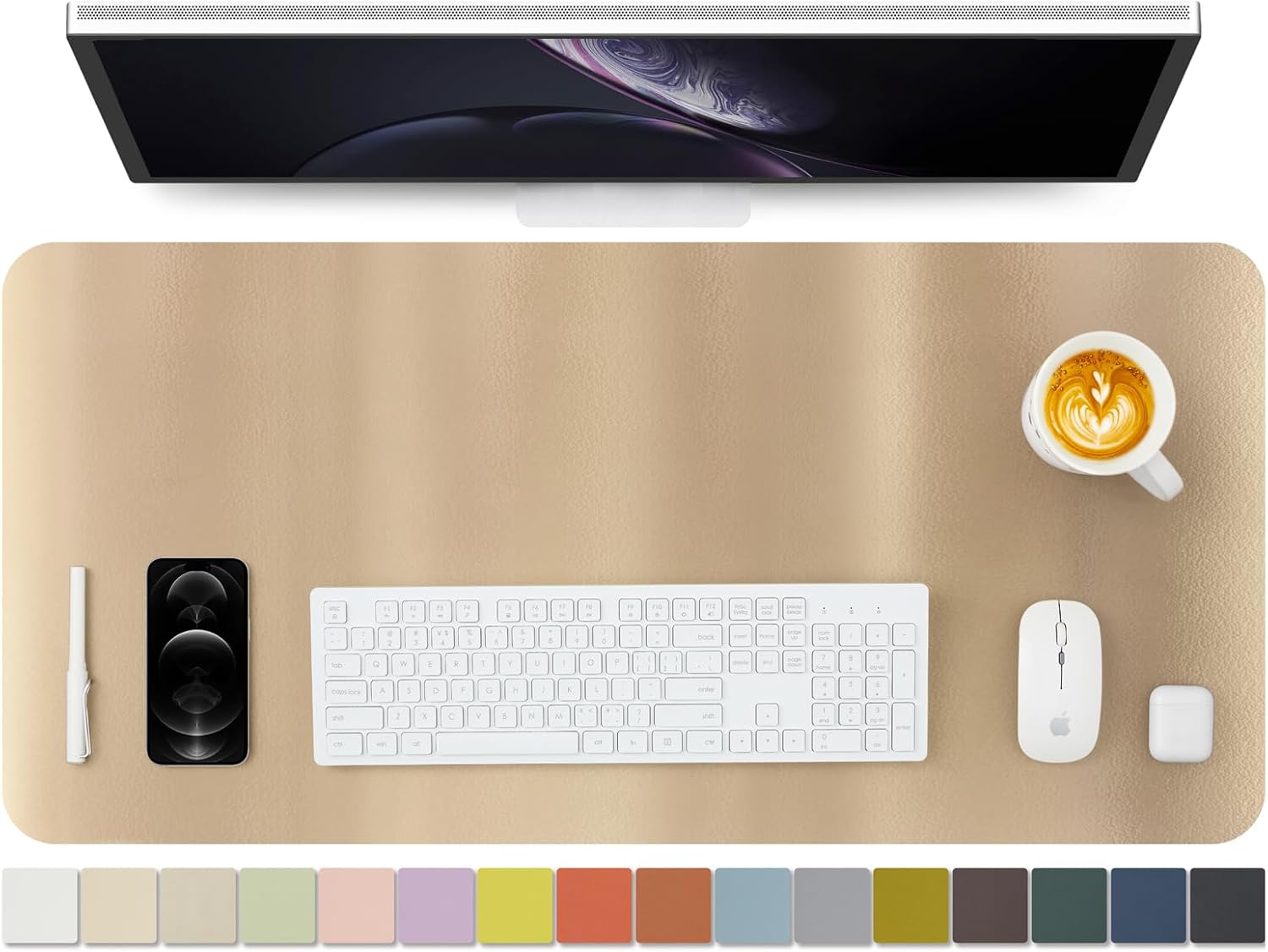 HOMIEAZICOZI Leather Desk Mat - Non-Slip PU Pad for Office and Home Organization Accessories Ideal Large Mouse Mats on Top of Desks (Champagne Gold,36''x 17'') (DPD-CG-L)