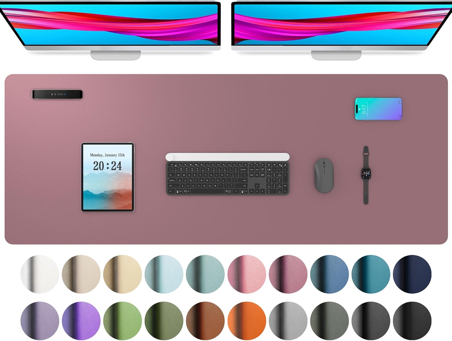 Aothia Leather Desk Pad Protector, Mouse Pad, Office Desk Mat, Non-Slip PU Leather Desk Blotter, Laptop Desk Pad, Waterproof Desk Writing Pad for Office and Home (48"x17", Dark Pink)
