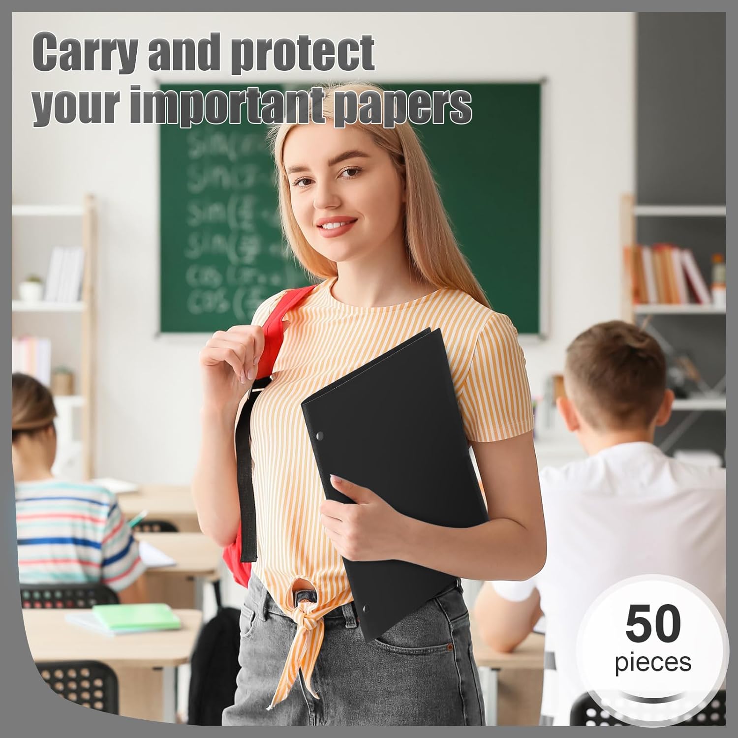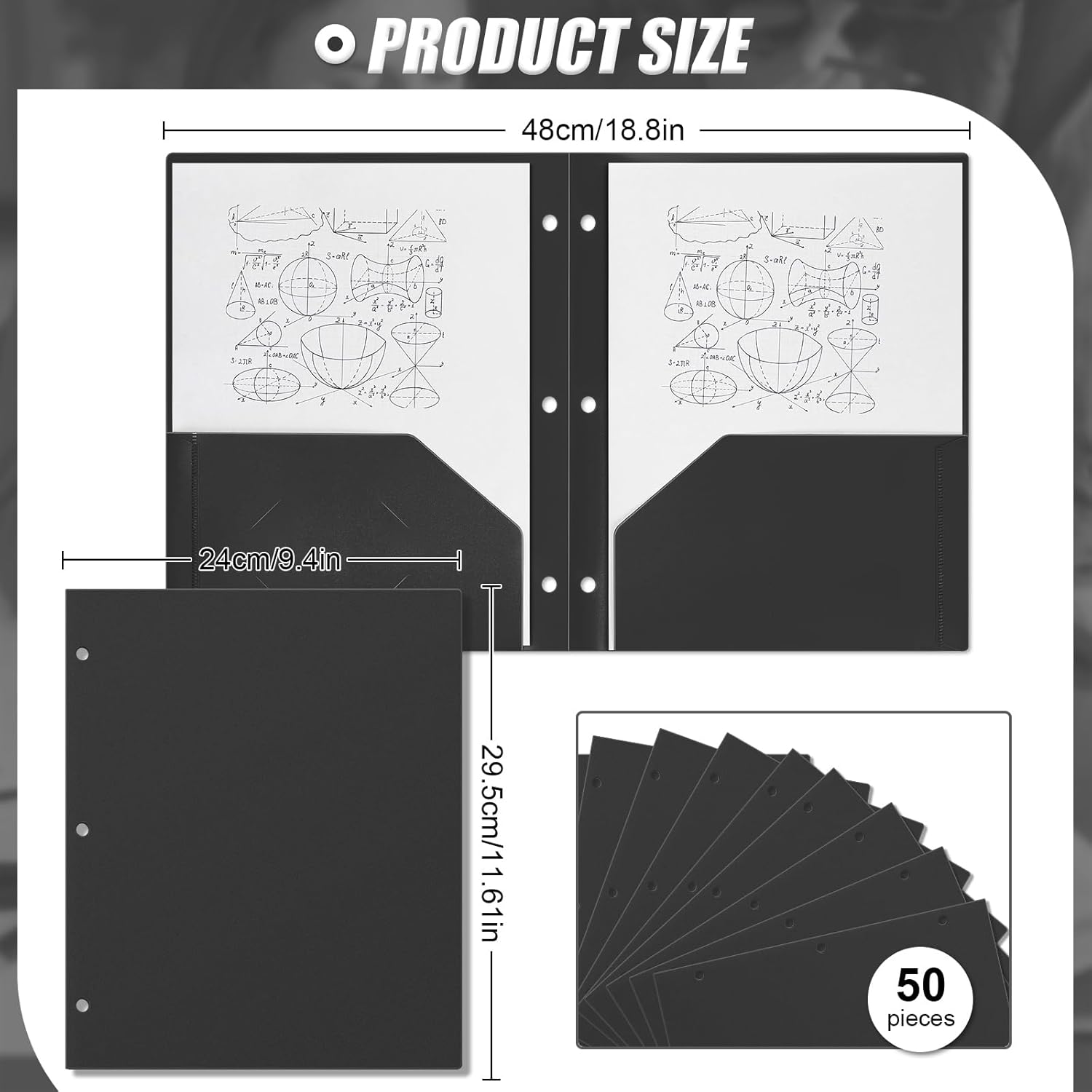 - Enough Quantity to Use and Replace: you will receive 50 pieces black plastic pocket folders, each with 3 holes and 2 pockets, fitting 3 ring binders and 8.5 x 11 inch letter size paper; Each pocket easily and neatly stacks 50 pages of letter size paper