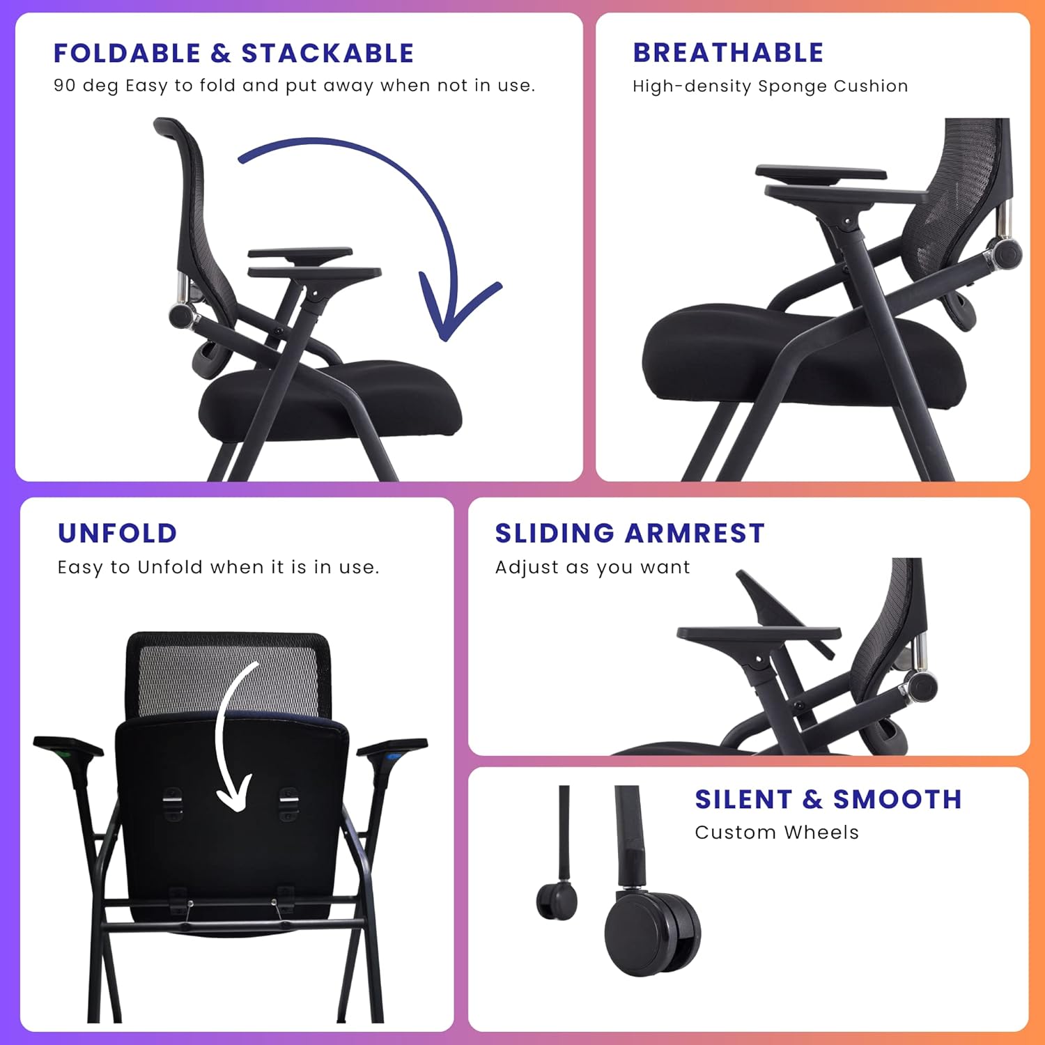 4 Pack Stackable & Foldable Conference Room Chairs with Lumbar Support, Armrest - Ergonomic Mesh Bouncing Back for Office Meeting, Conference, Reception and Training Room Chair