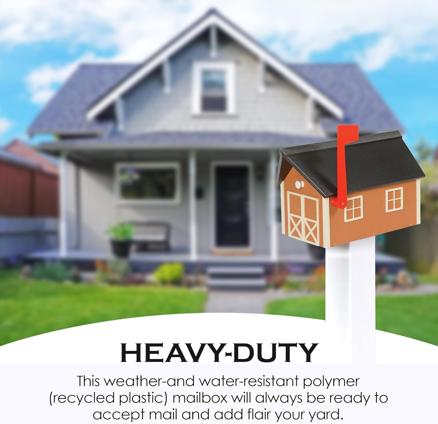 - MADE OF WATER-RESISTANT MATERIAL: Wooden mailboxes may not withstand exposure to the elements so we offer a better alternative. Designed for outdoor uses, our poly-material (recycled plastic) mailbox can hold up in any weather. Rain or shine, this weather- and water-resistant small mailbox will always be ready to accept your mails and decorate your lawn.