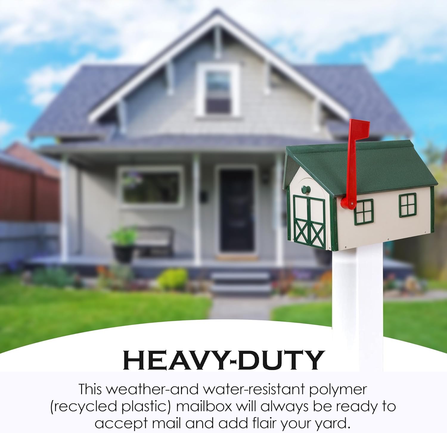 Peaceful Classics Poly Mailbox Durable, Weather-Resistant Amish Craftsman Mailboxes for Outside Uses Like Front Yard and Road Side Long-Lasting, Decorative, Modern Mailbox (Beige w/Green Trim & Roof)