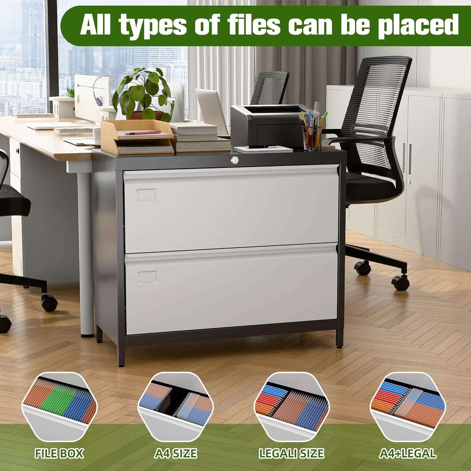 - Durable Steel Construction & Scratch-Resistant Finish‌:Built with heavy-duty solid steel, this lateral file cabinet delivers reliable stability for home offices or professional workspaces. The smooth powder-coated surface resists scratches and fingerprints while allowing effortless cleaning—maintaining a sleek, modern look for years.