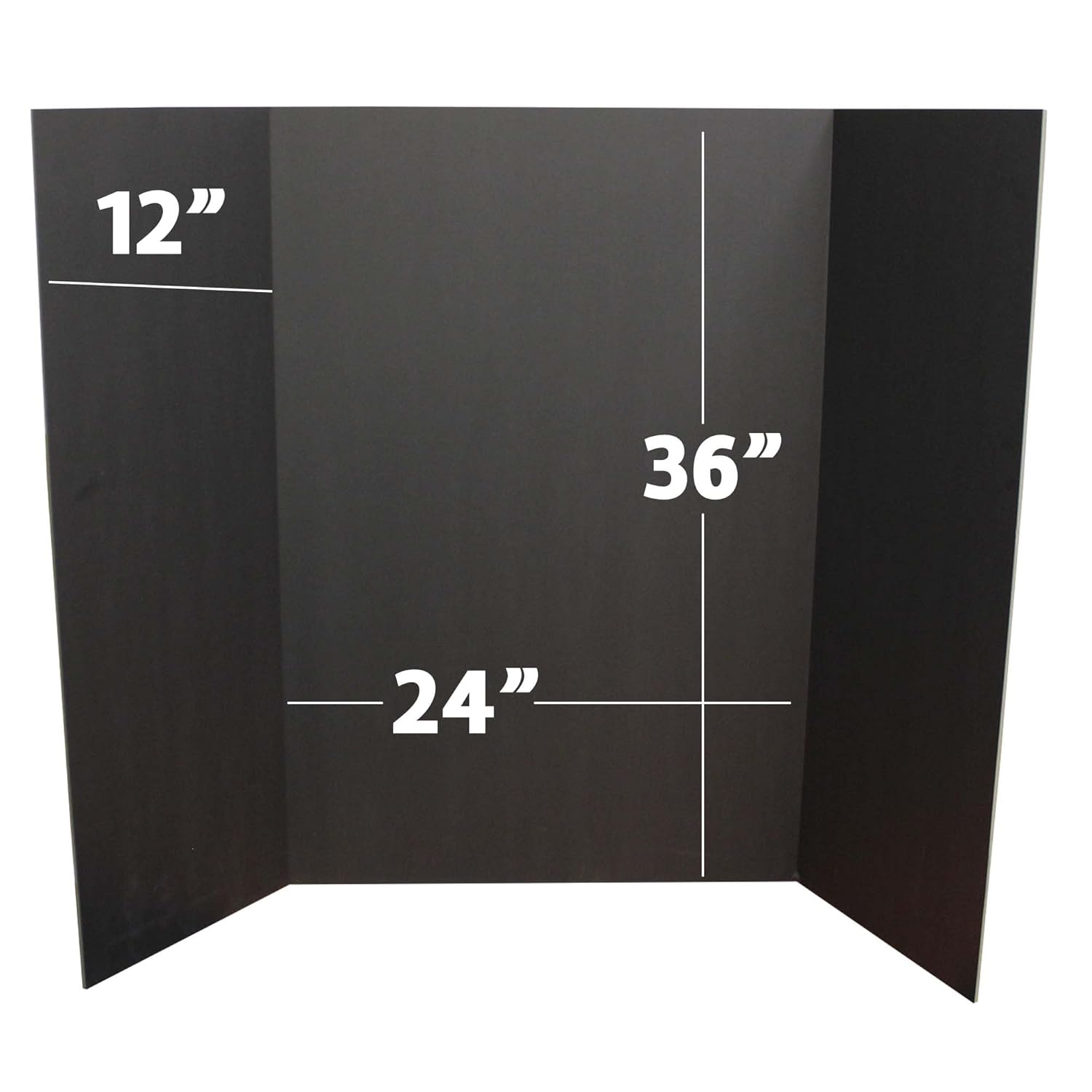 - CLASSIC DIMENSIONS – Trifold Foam Board is 36” height; 48” width is the ideal size for all display and presentation projects. When opened center panel measures 24” wide, side panels measure 12” and is 3/16" thick.