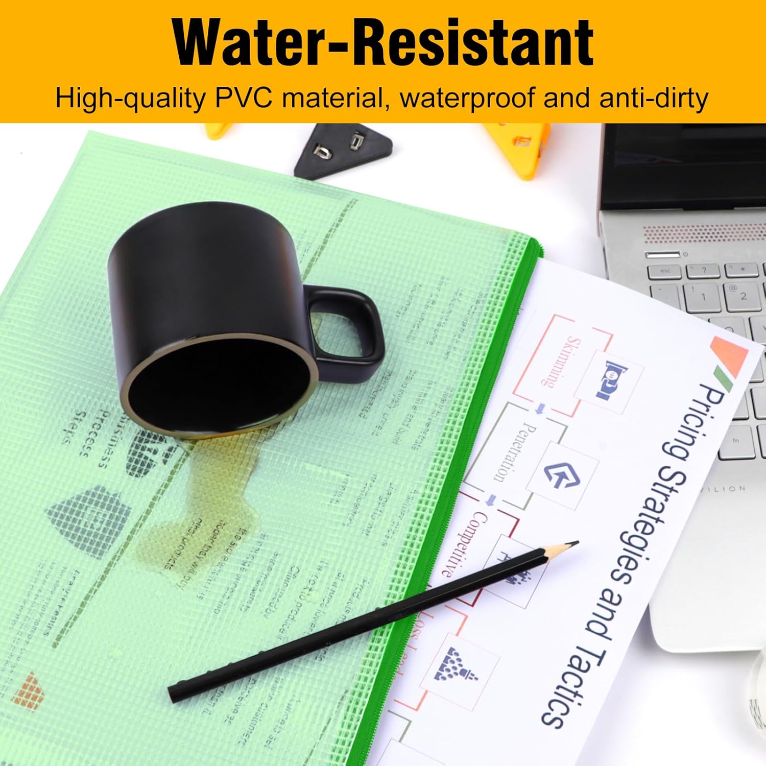 - HIGH-QUALITY MATERIAL: These mesh bags with zippers are made of PVC, are safe and durable, contents without worrying about being splashed with water. Protect your files from moisture, keep them flat and clear. Upgraded zipper, better quality.