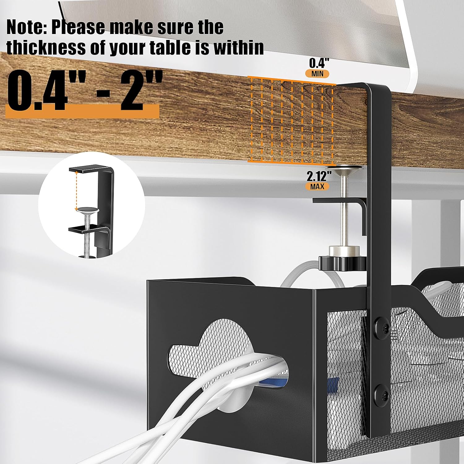 - ELEGANT UNDER DESK CORD ORGANIZER - The design of the mesh cable management frame is more beautiful and generous than that of pure iron wire products, and there is no problem putting small items in it. The design of cable management holes on both sides can help you manage cables more easily.