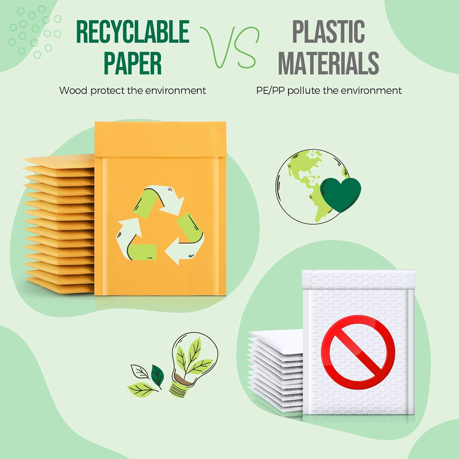 - 【Recyclable Materials Bubble Mailer】The padded envelope is made of kraft. Your customers will be surprised and relieved to open a bubble mailer of materials. Using biodegradable shipping supplies will speak volumes about your sense of social responsibility and the high grade of your brand, and bring you closer to your customers through a good corporate image.