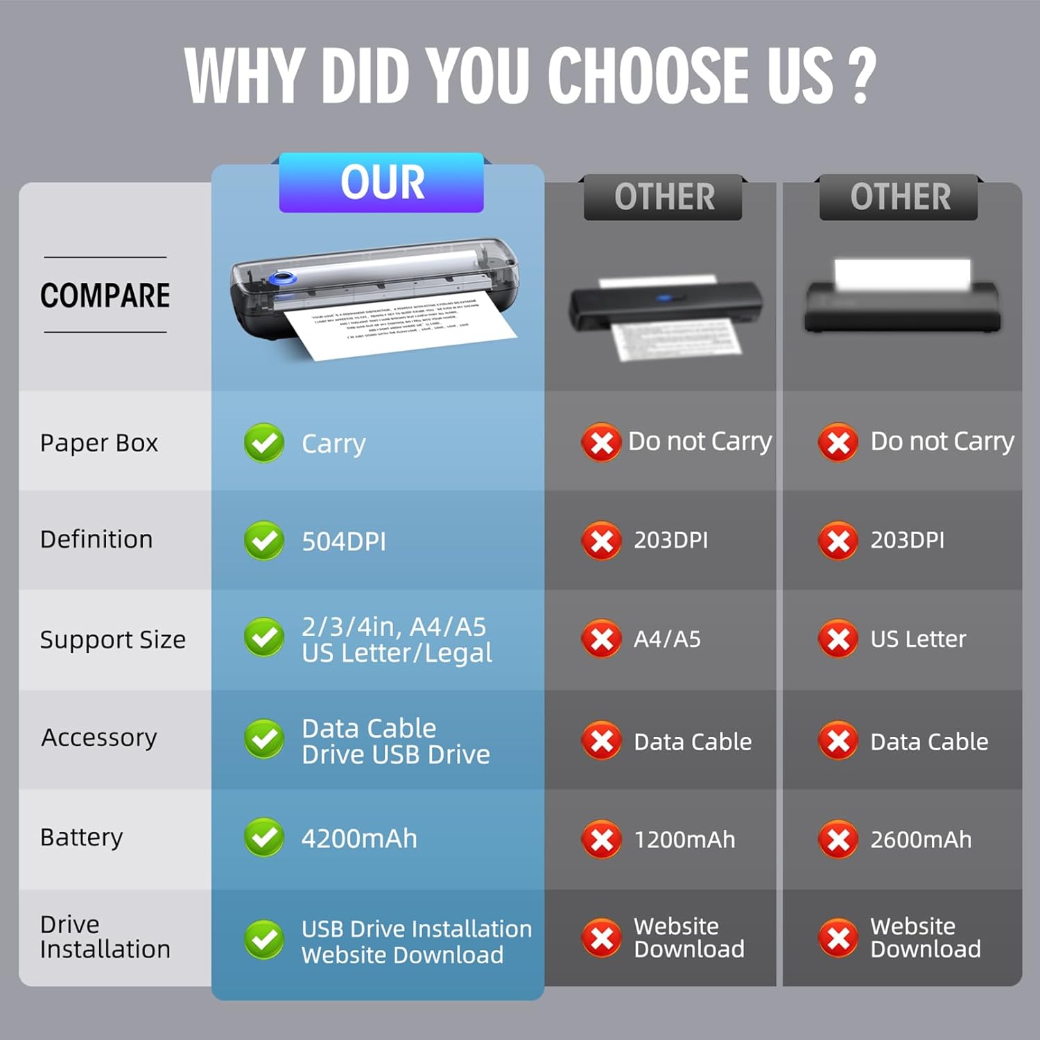 Portable Printer Wireless for Travel,Bluetooth Thermal Support 8.5inches X 11inches US Letter &Legal, A4&A5 Thermal Paper, Inkless Compatible with iOS, Android & Laptop for Office Car Home